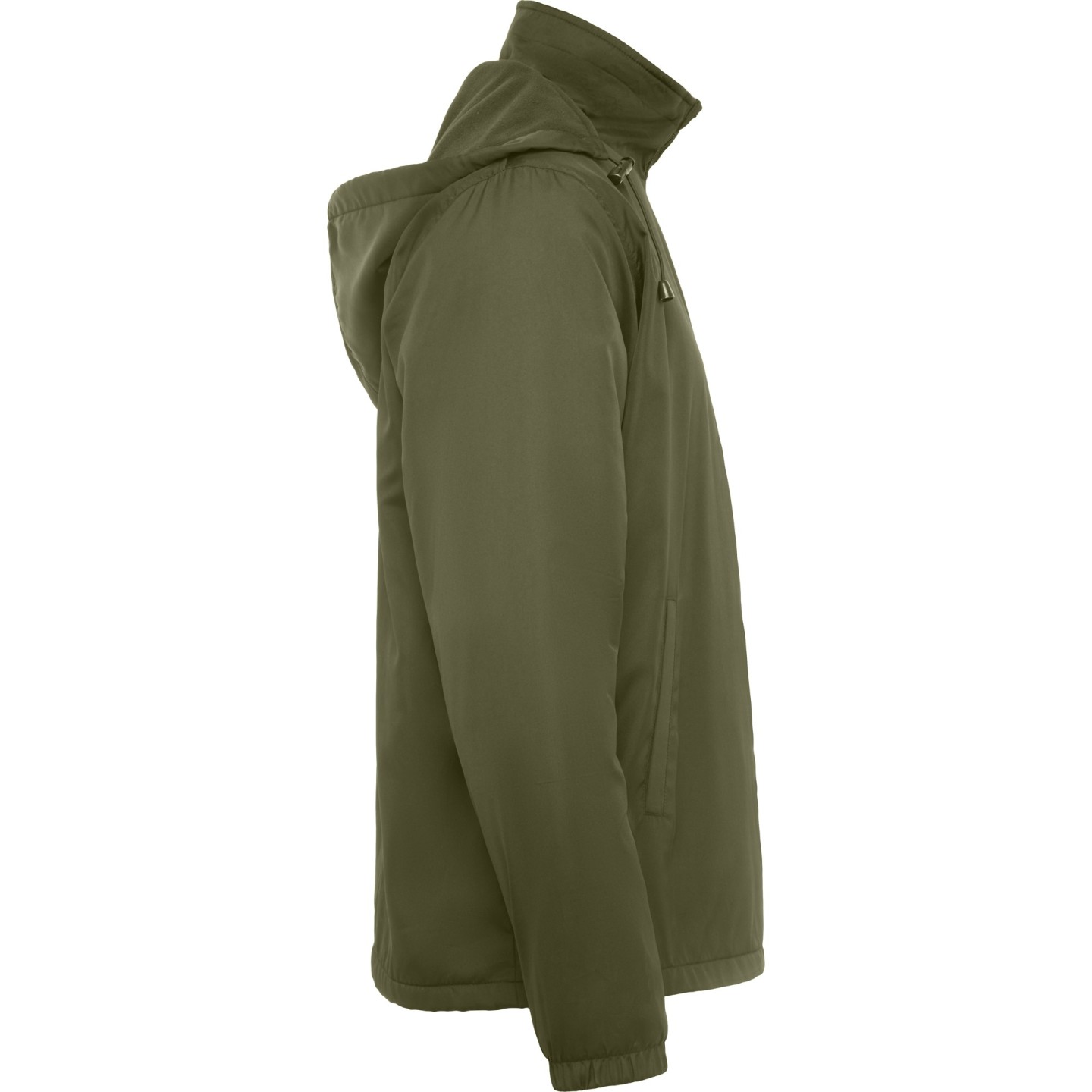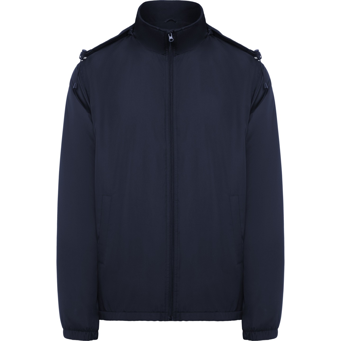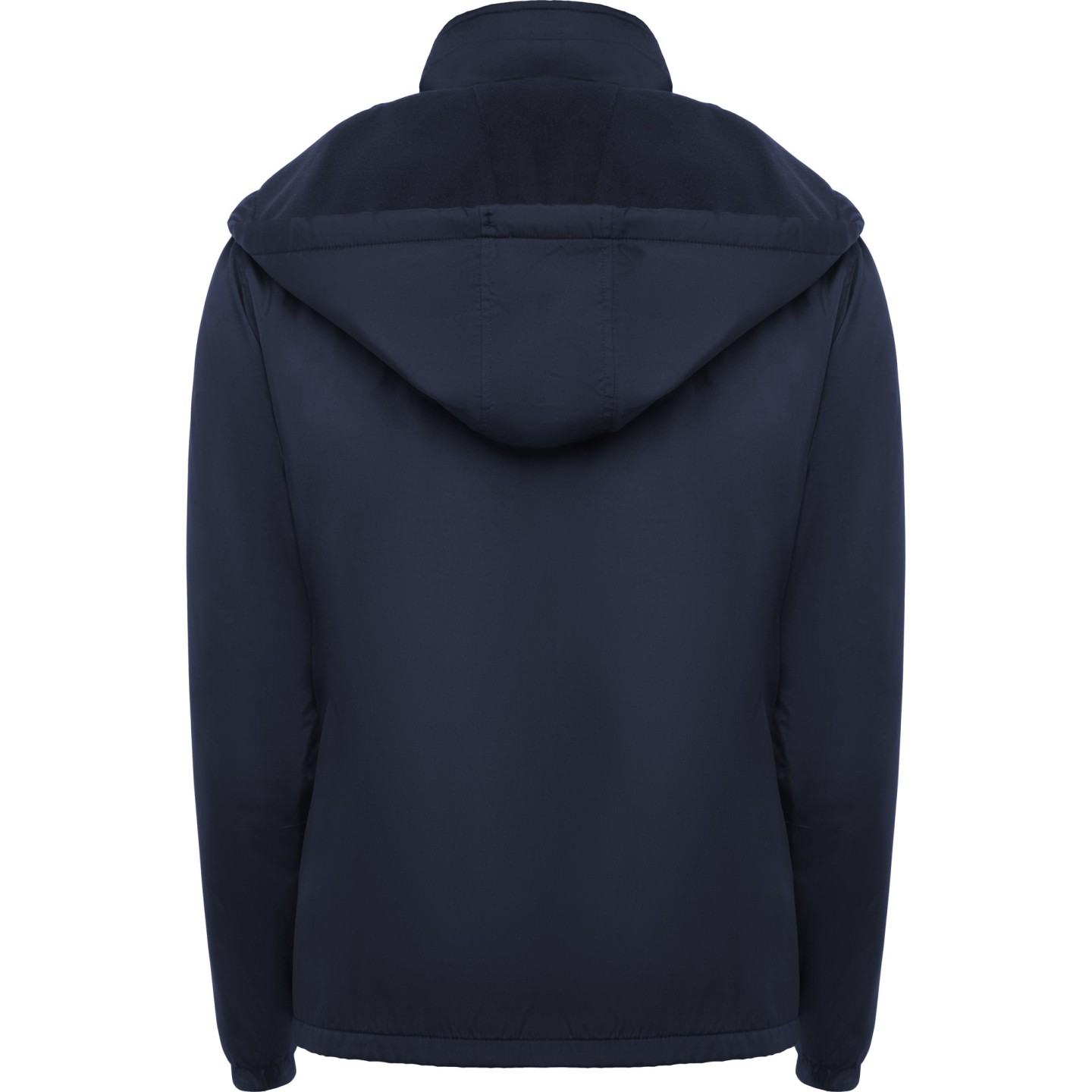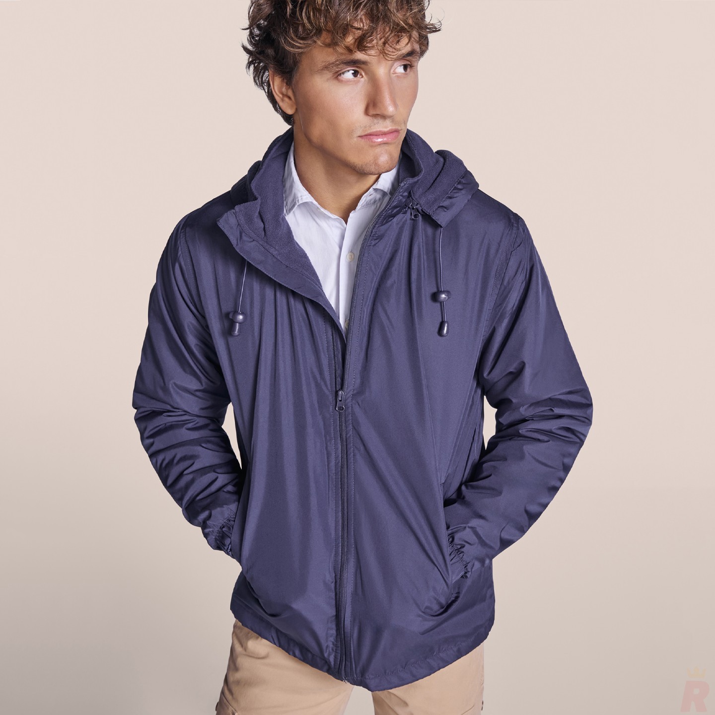 Chaqueta ligera para hombre con forro micropolar, capucha extraíble y bolsillos con cremallera. Ideal para uso laboral y personalizable con logotipo.