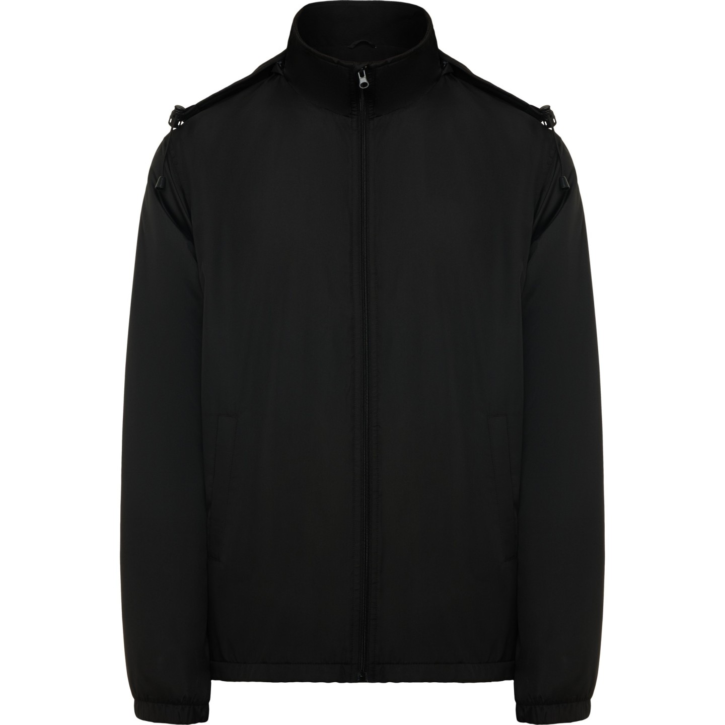 Con un gramaje de 330 g/m², la chaqueta es repelente al agua y ofrece una barrera eficaz contra el viento, convirtiéndola en una opción excelente para trabajadores en exteriores o actividades promocionales en épocas frías. Su diseño funcional y moderno incluye un cuello alto y una capucha extraíble con ajustadores, que permite adaptarse según las condiciones climáticas.