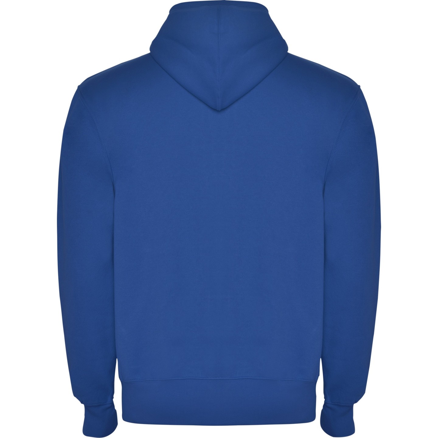 Su diseño moderno incluye cuello alto, capucha forrada con canalé en el contorno y cremallera completa, ideal para adaptarse a diferentes estilos y usos, tanto en entornos informales como corporativos. El acabado en punto canalé 2x2 en puños y cintura con un 3% de elastano garantiza un ajuste cómodo y duradero, mientras que el bolsillo estilo canguro aporta funcionalidad y abrigo para las manos.