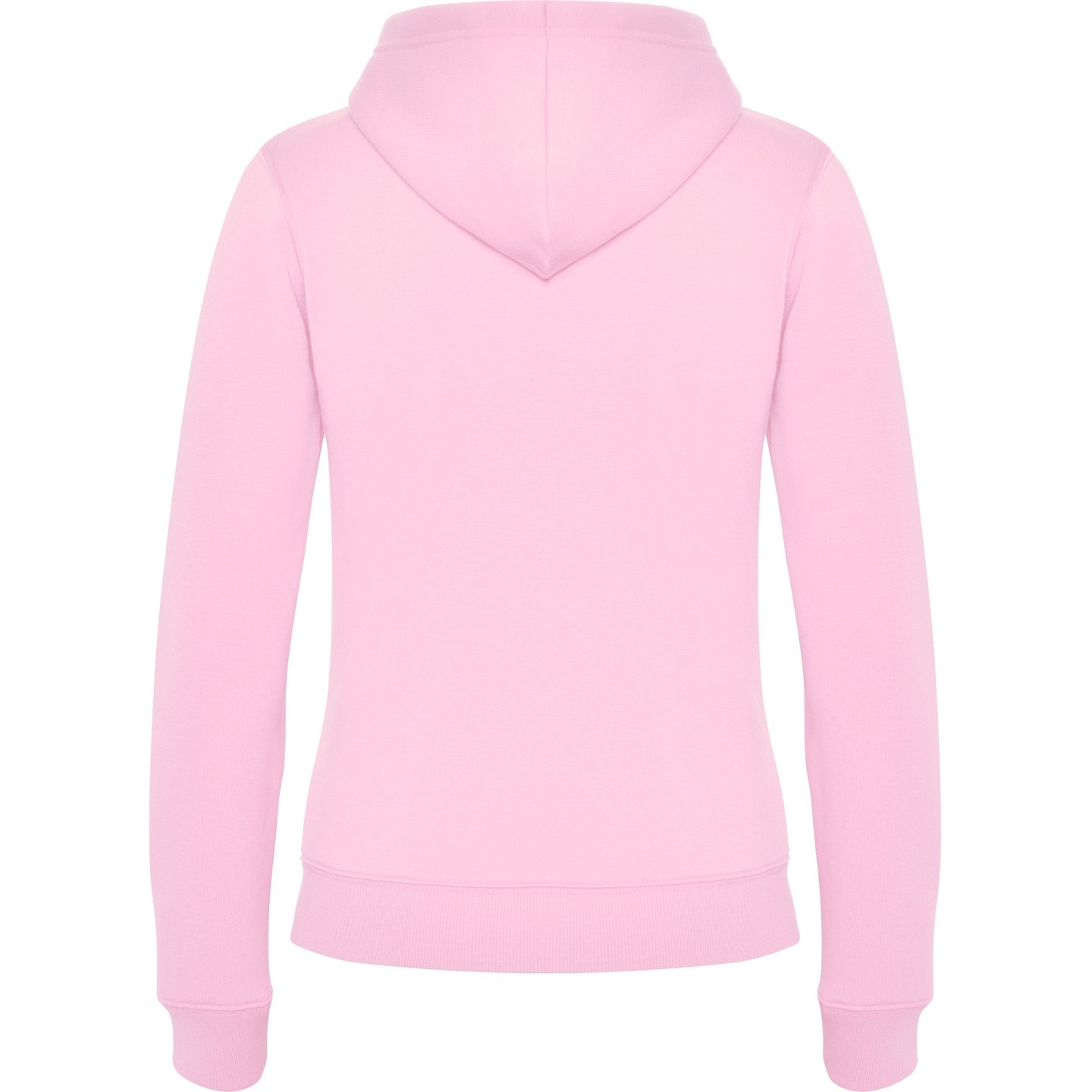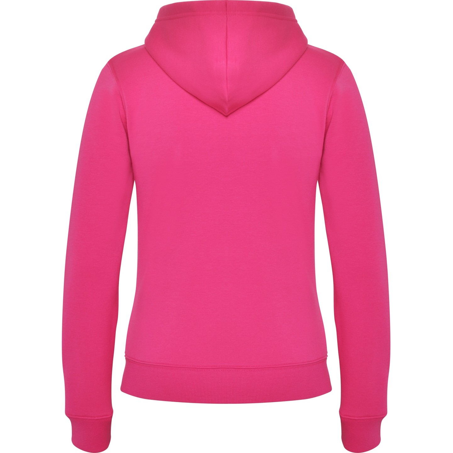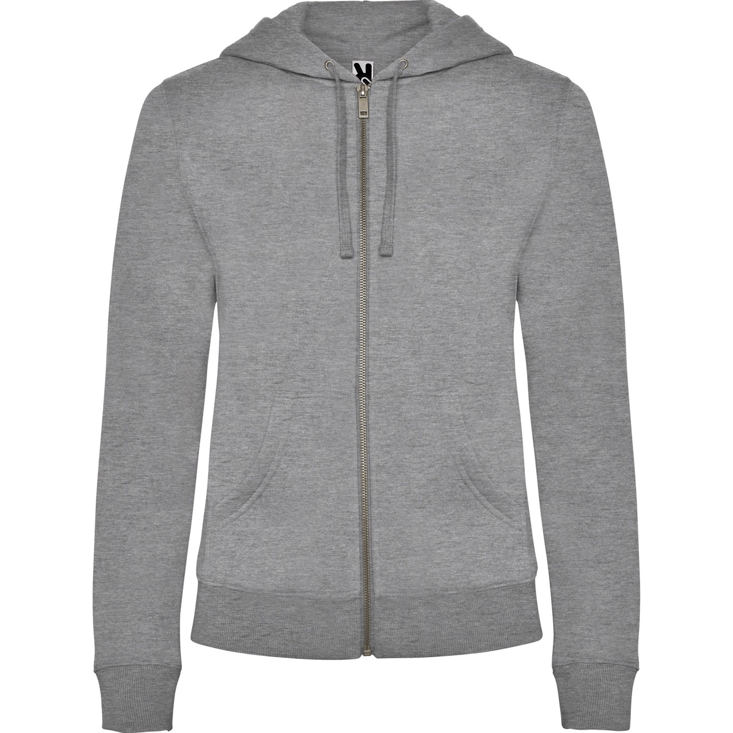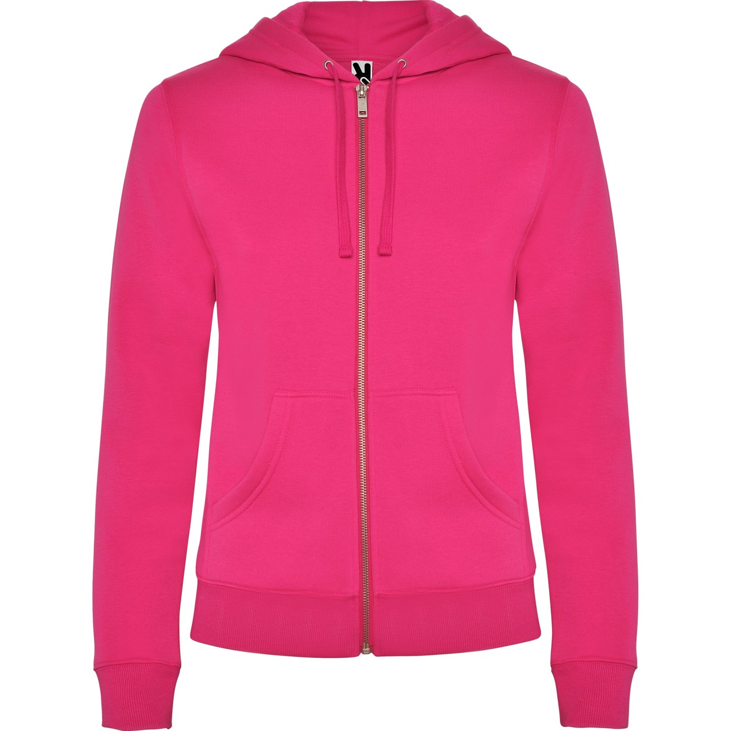 Sudadera con capucha para mujer en felpa perchada. Corte entallado, cremallera metálica, bolsillo canguro y etiqueta removible. Ideal para personalizar con logotipo
