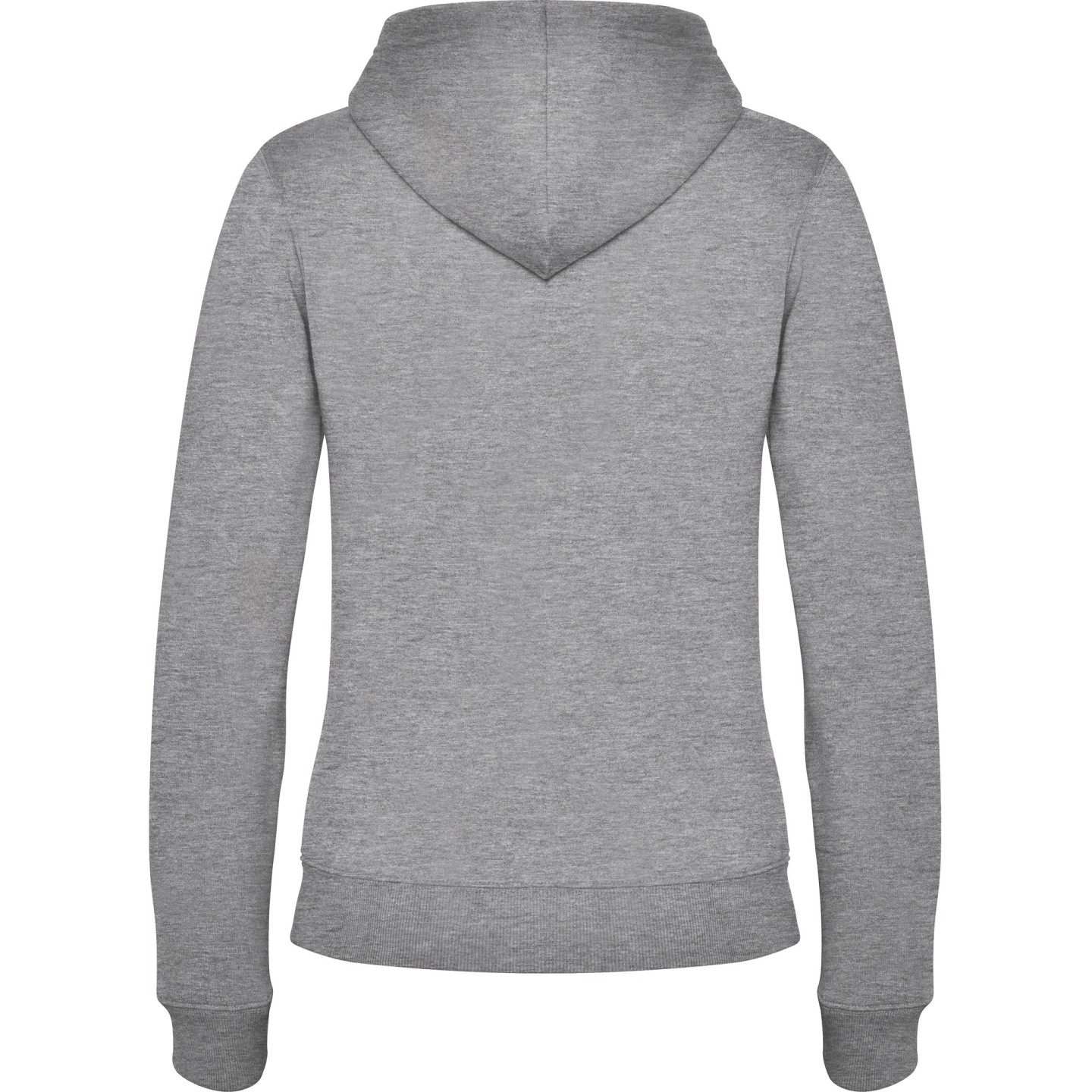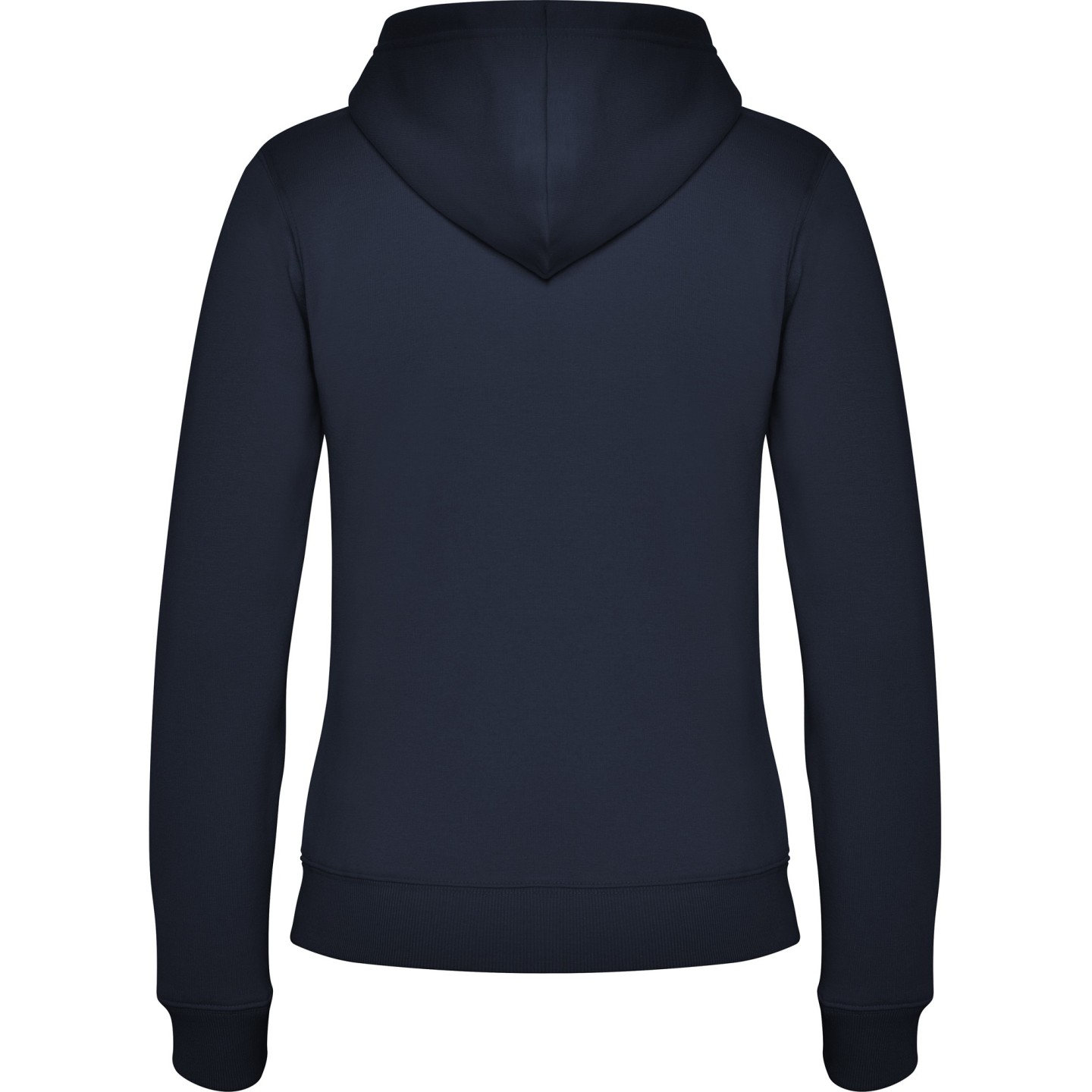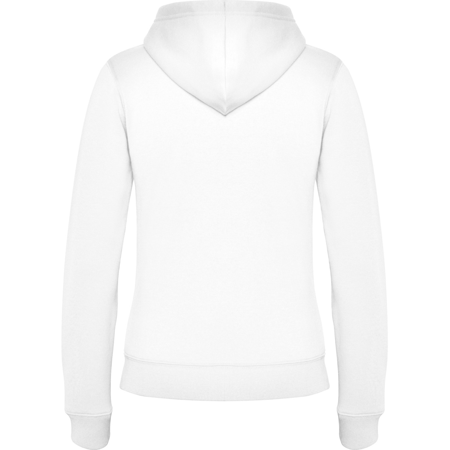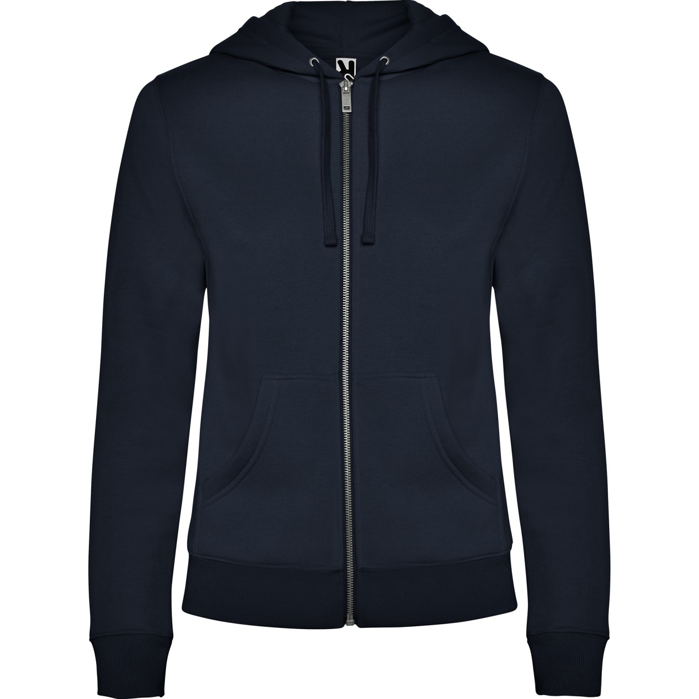 Sudadera con capucha para mujer en felpa perchada. Corte entallado, cremallera metálica, bolsillo canguro y etiqueta removible. Ideal para personalizar con logotipo