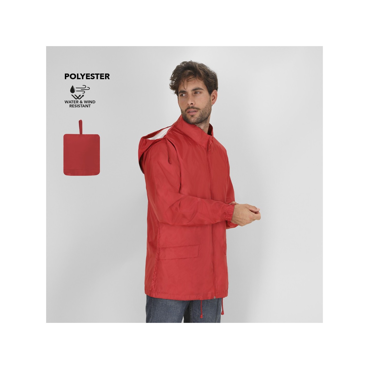 Chubasquero unisex BRAVION con capucha extraíble, puños elásticos y bolsillos prácticos. Ligero y plegable. Personalizable con tu logotipo.
