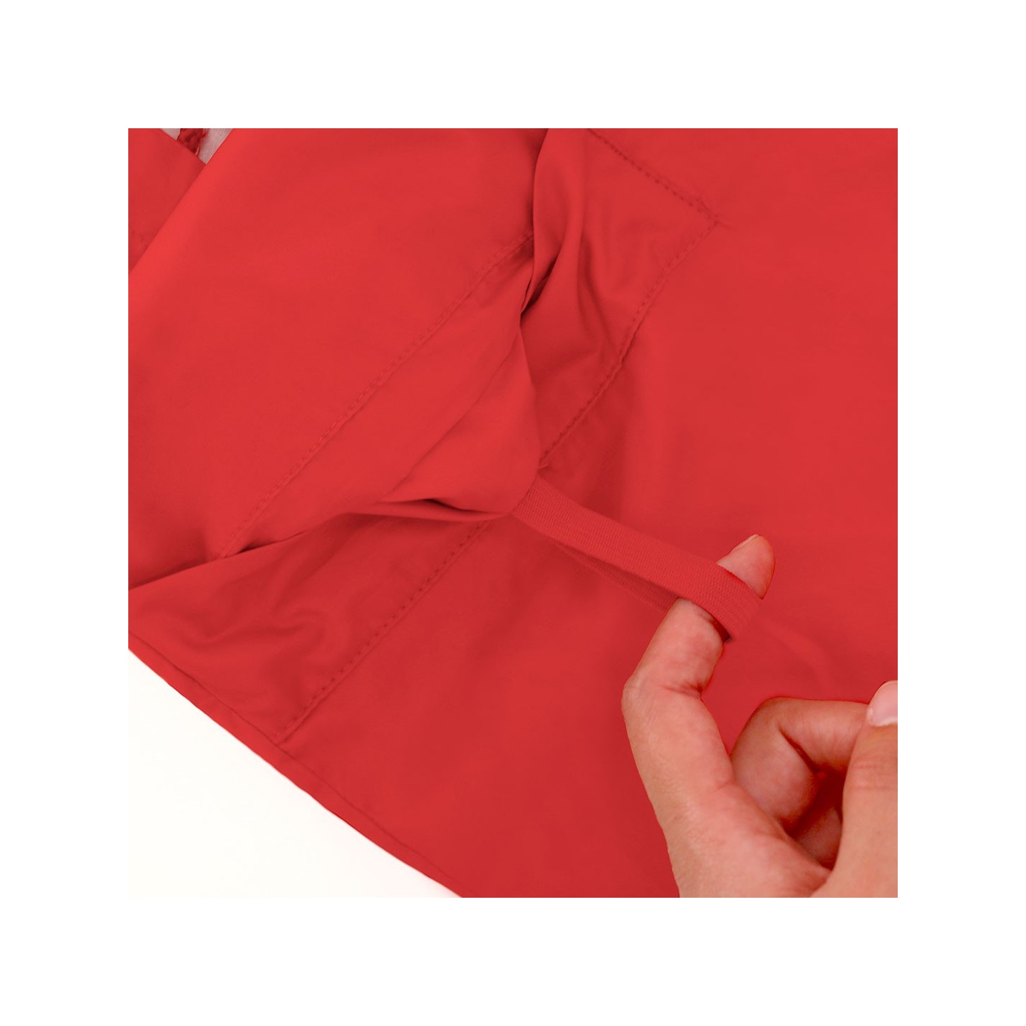 Para mayor comodidad, el Chubasquero BRAVION incorpora puños elásticos que garantizan un ajuste seguro y un bajo ajustable con cordones interiores que ofrecen un ajuste adicional según tus necesidades. Además, uno de los bolsillos incluye una goma elástica interior que permite plegar y almacenar el chubasquero de manera compacta cuando no está en uso.