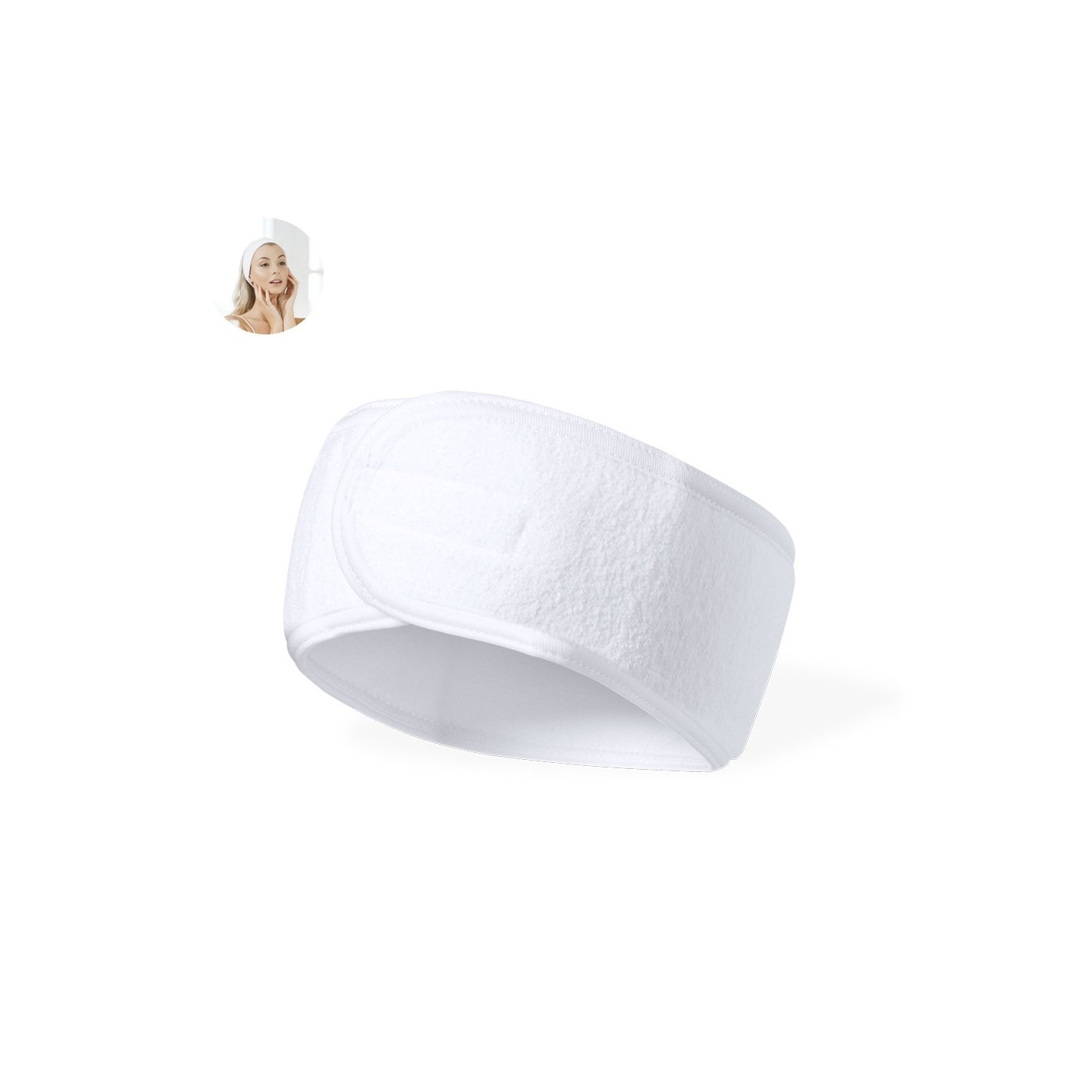 La Cinta Pelo Madax está fabricada en poliéster suave, ajustable con velcro para despejar el cabello. Ideal para tratamientos beauty. Personalizable.