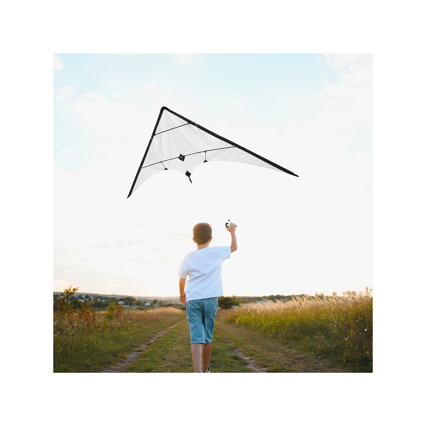 La cometa incluye 2 asas de plástico con hilo, lo que permite un manejo versátil y un control preciso durante el vuelo, ideal tanto para principiantes como para los más experimentados. Además, la práctica funda de transporte, también hecha de RPET, con asa, facilita su traslado y almacenamiento, permitiendo llevar la cometa cómodamente a cualquier lugar.