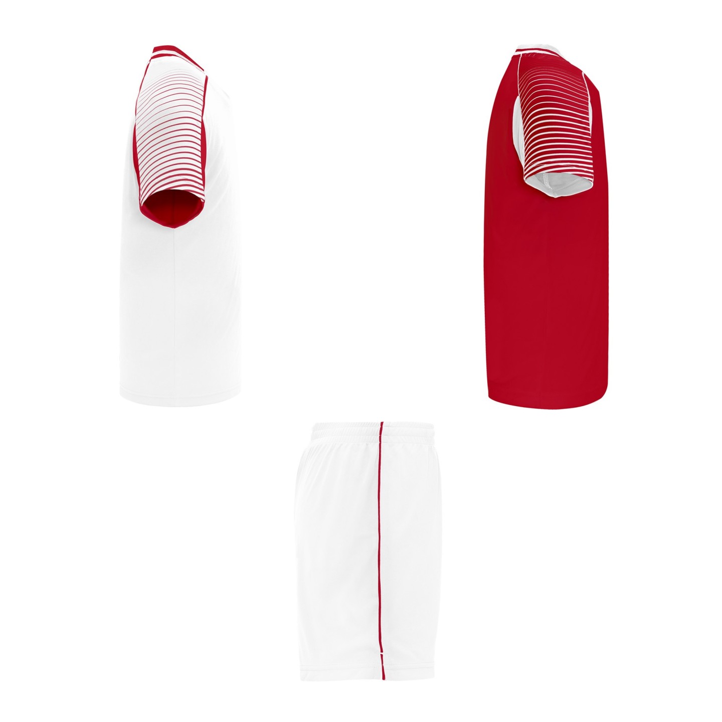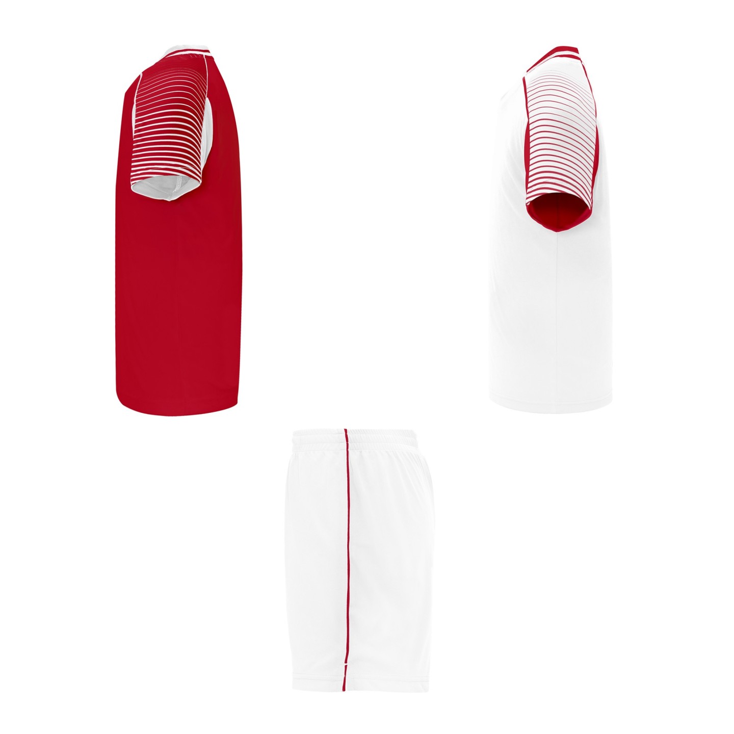 Conjunto deportivo técnico unisex de tres piezas (2 camisetas + 1 pantalón). Ideal para equipos, entrenamientos o eventos deportivos. Personalizable con logotipo