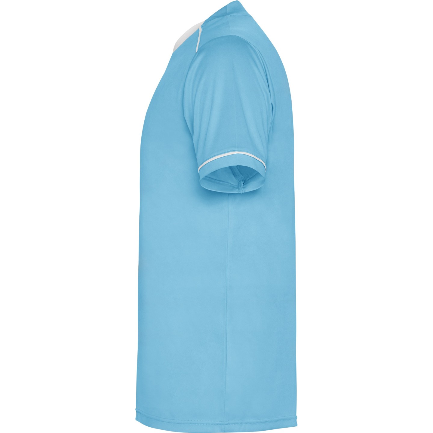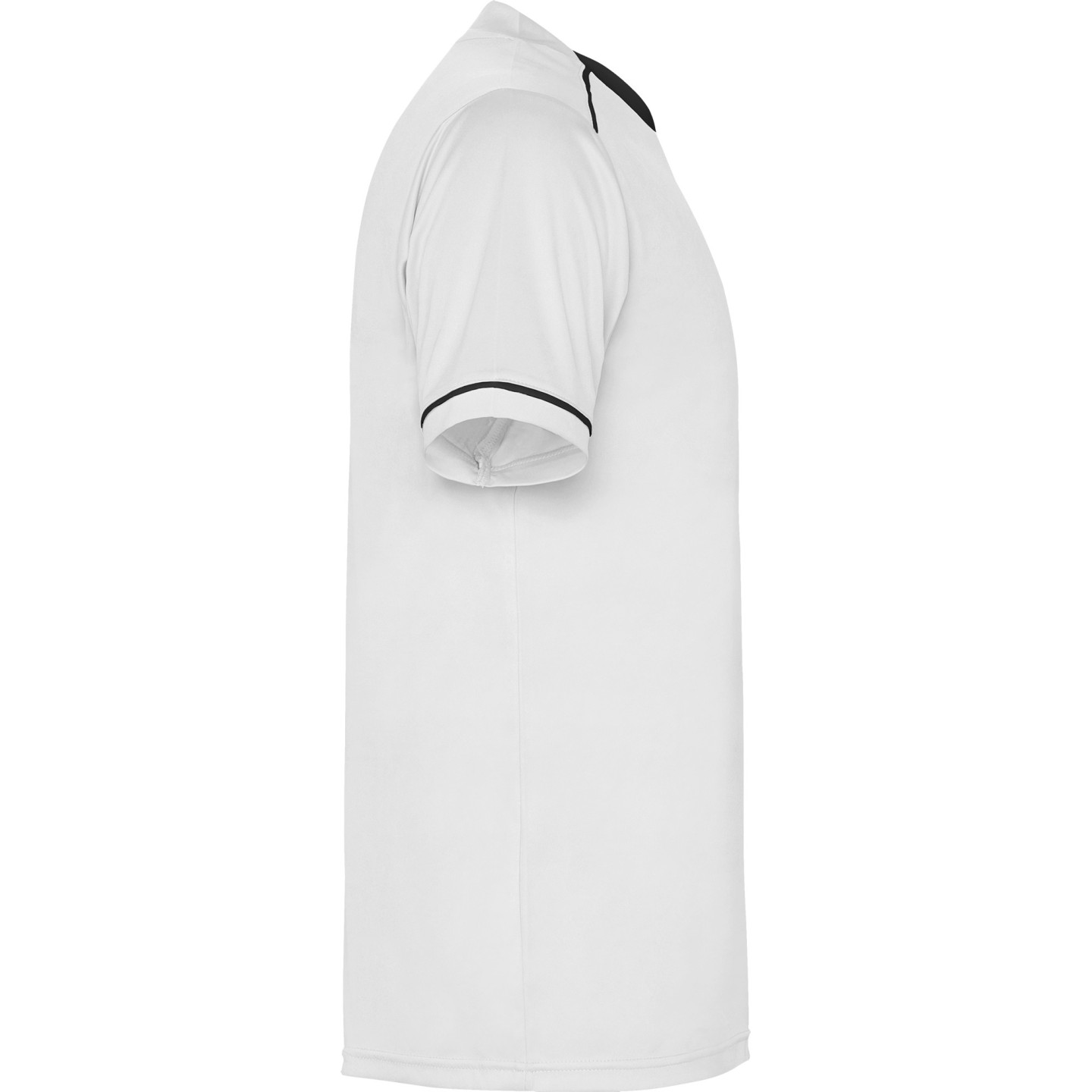 El diseño bicolor se enfatiza gracias a los ribetes decorativos en contraste en los hombros y mangas, aportando un toque visual dinámico y moderno. Las mangas cortas tienen un acabado en vivo con abertura, brindando mayor libertad de movimiento.