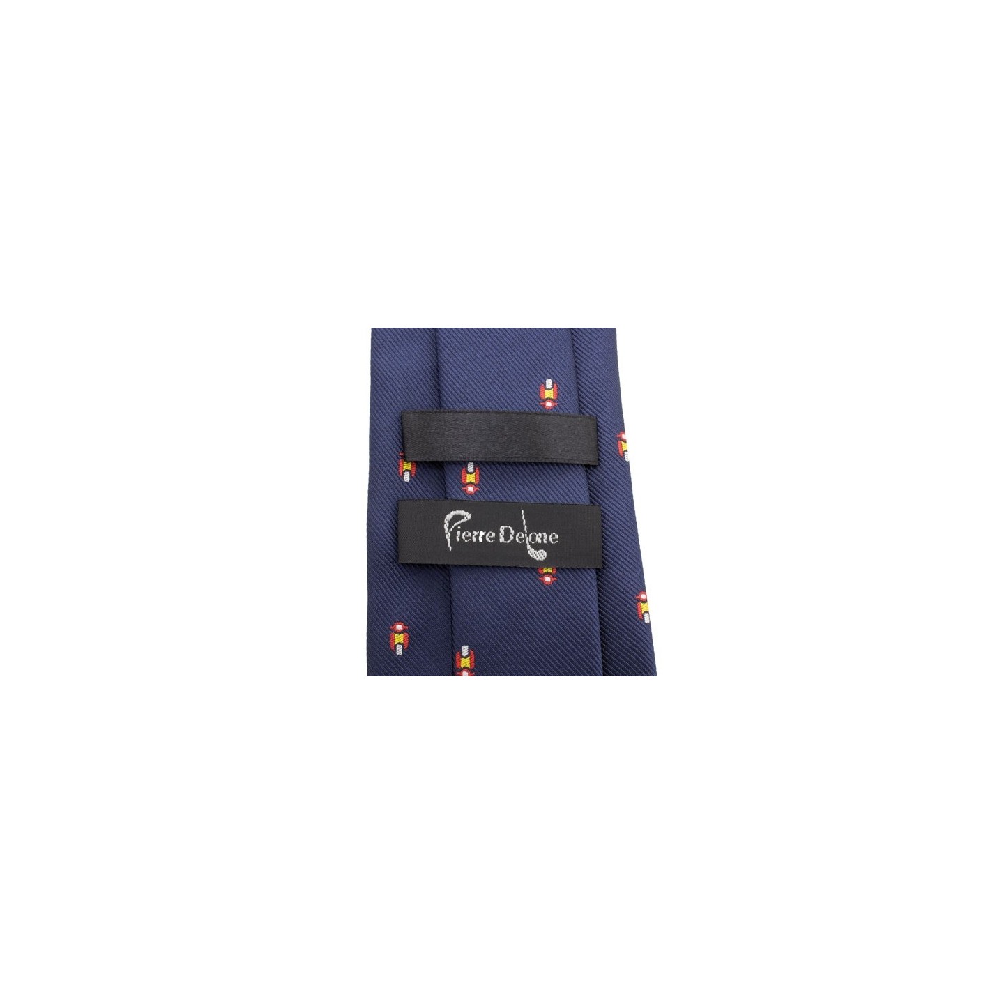 Corbata de microfibra con diseño original de ciclomotores en los colores de las banderas de España e Italia. Marca Pierre Delone. Incluye estuche y etiqueta personalizable