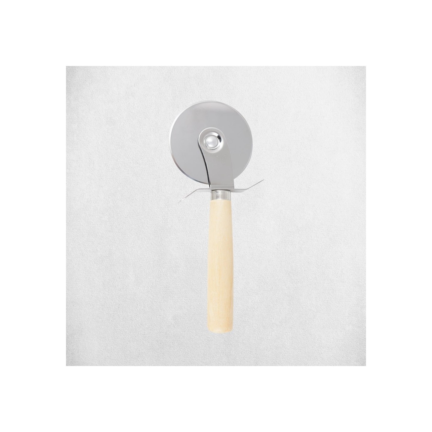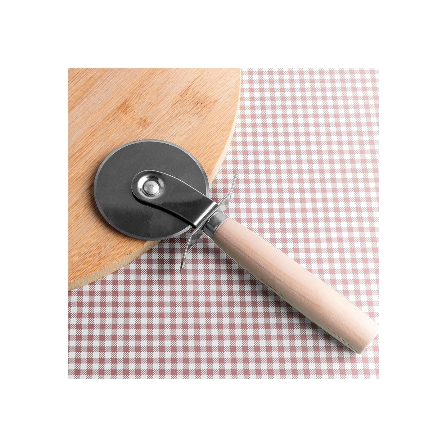 Fabricado en acero inoxidable de alta calidad, este cortapizza garantiza durabilidad y eficiencia en cada uso. Su mango de madera no solo añade un toque de estilo, sino que también proporciona un agarre cómodo y seguro durante el manejo.