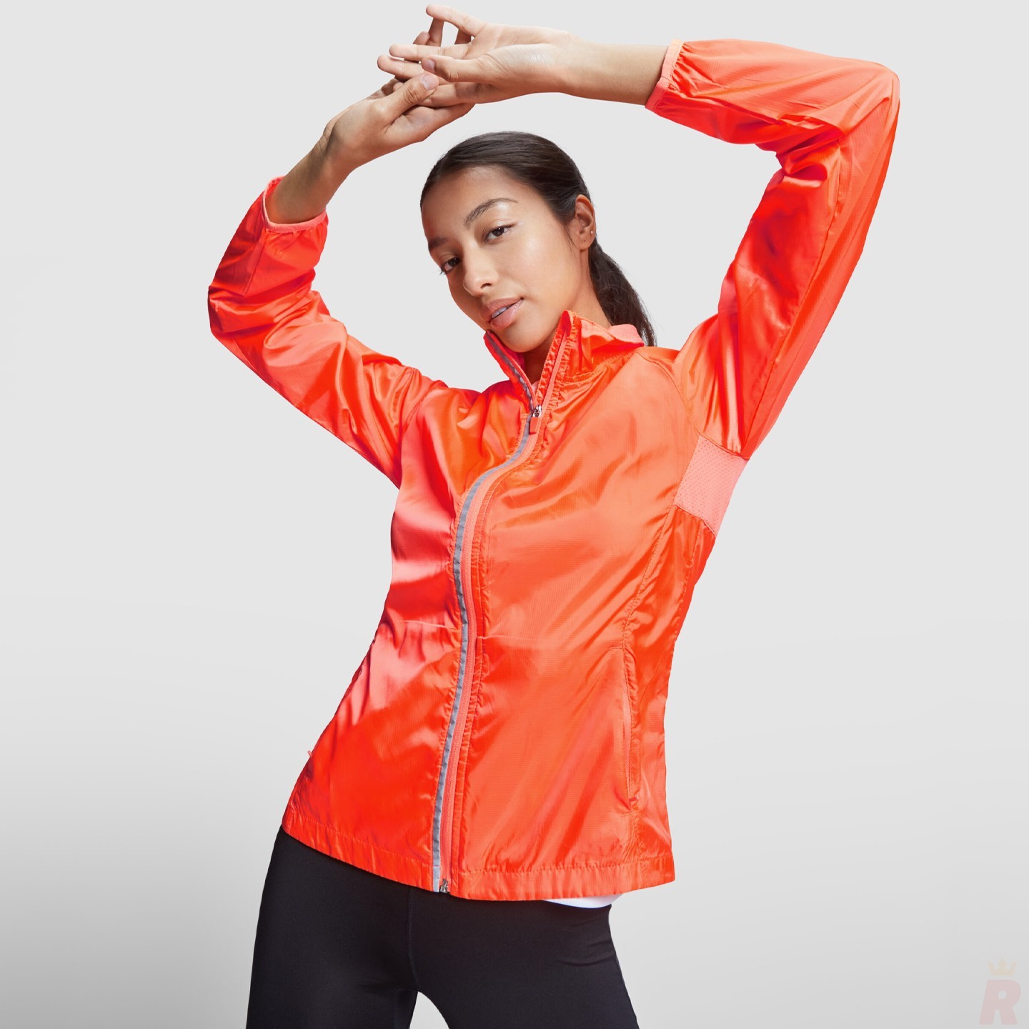 Cortavientos técnico entallado para mujer, transpirable, ligero y plegable. Ideal para personalizar con logotipo y usar en eventos, deporte o entorno corporativo