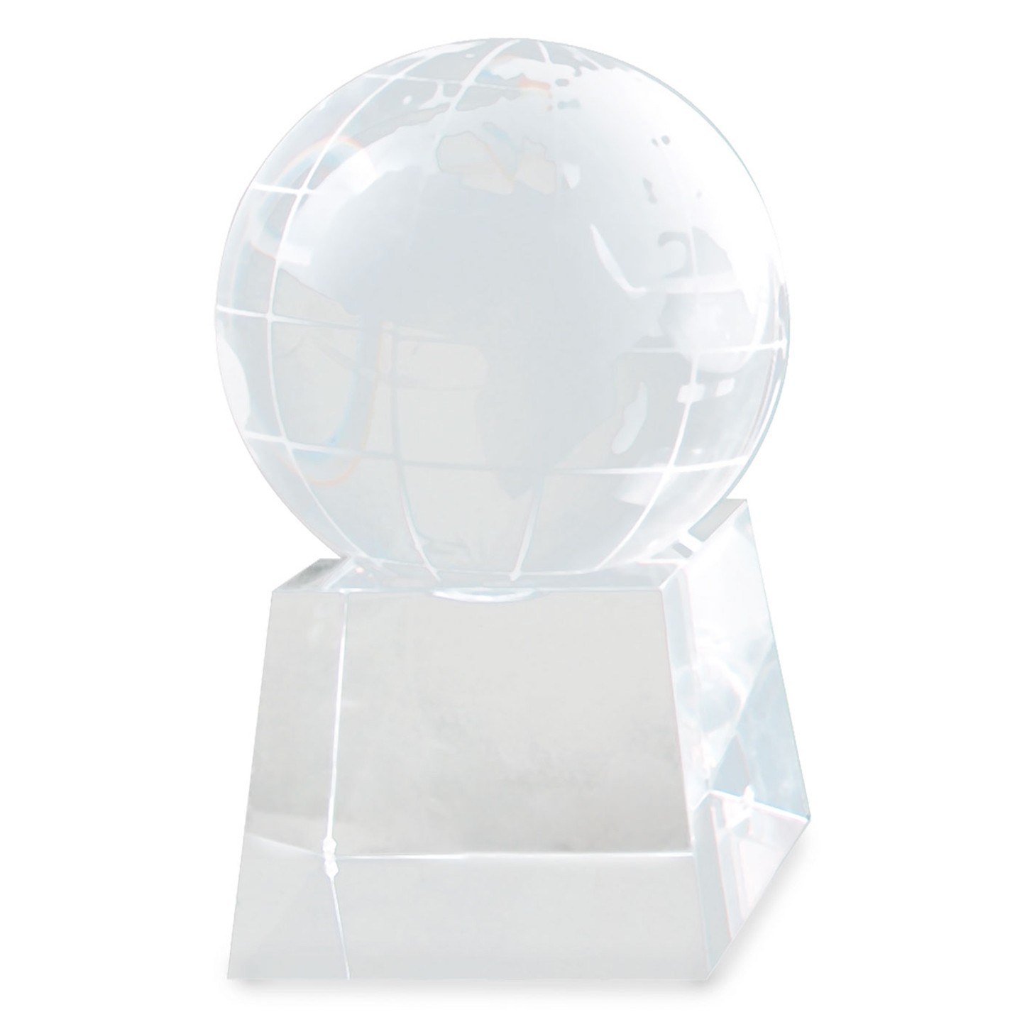 Cristal Bola Mundo Pequeña SPHERA, un trofeo elegante y simbólico, diseñado para reconocer logros con un enfoque internacional. Su confección en cristal transparente y su acabado refinado lo convierten en una pieza de gran distinción.