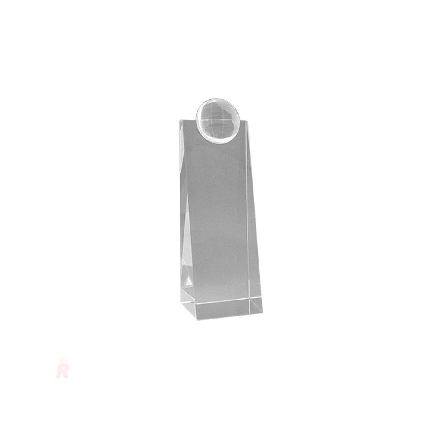 El Cristal Forma Alto Mundo ATLAS es un trofeo de gran distinción, elaborado en cristal transparente con un diseño exclusivo en forma de prisma. En su parte superior, luce una elegante bola del mundo tallada, lo que lo convierte en una pieza única para reconocimientos de alto nivel.