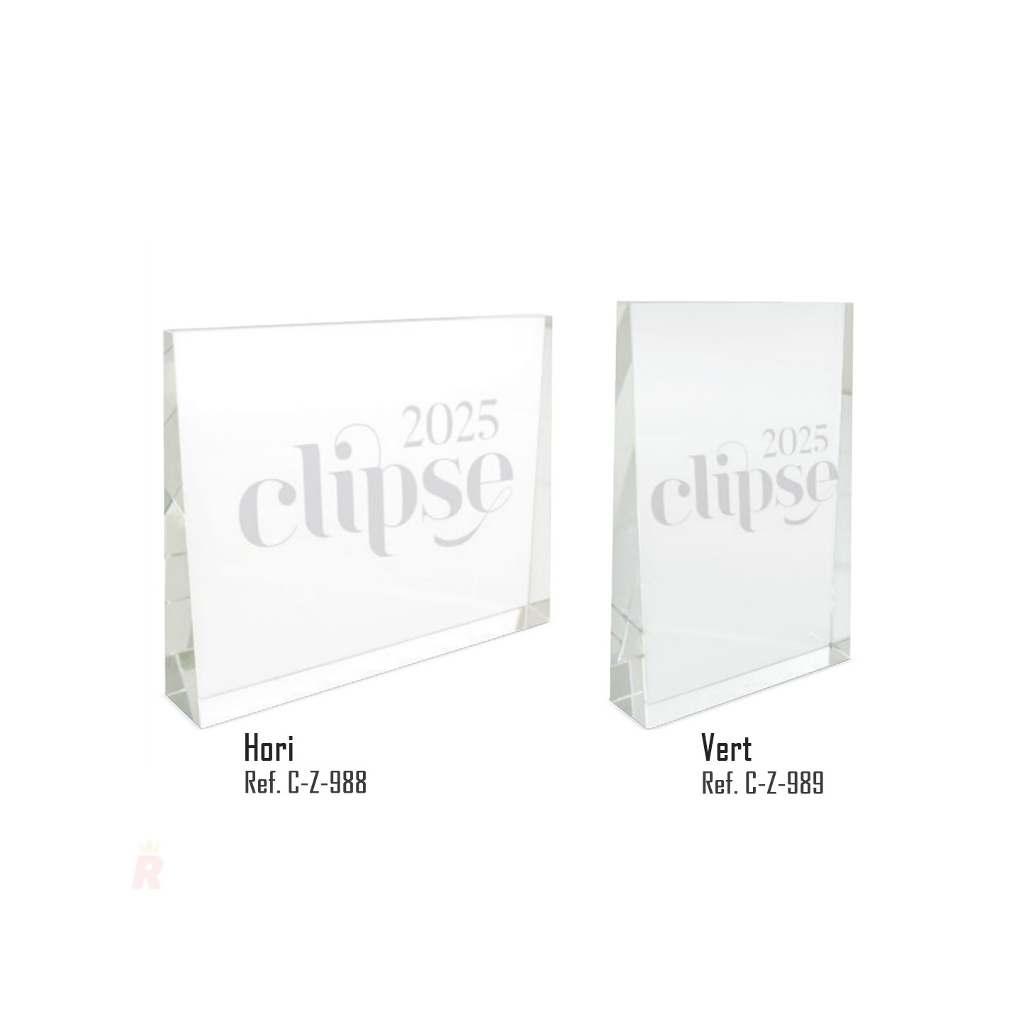 Fabricado en cristal transparente de alta calidad, su acabado transmite una sensación de sofisticación y distinción. El diseño minimalista y sin inscripciones permite personalizarlo con grabados o placas según la ocasión, añadiendo un toque único a cada premiación.