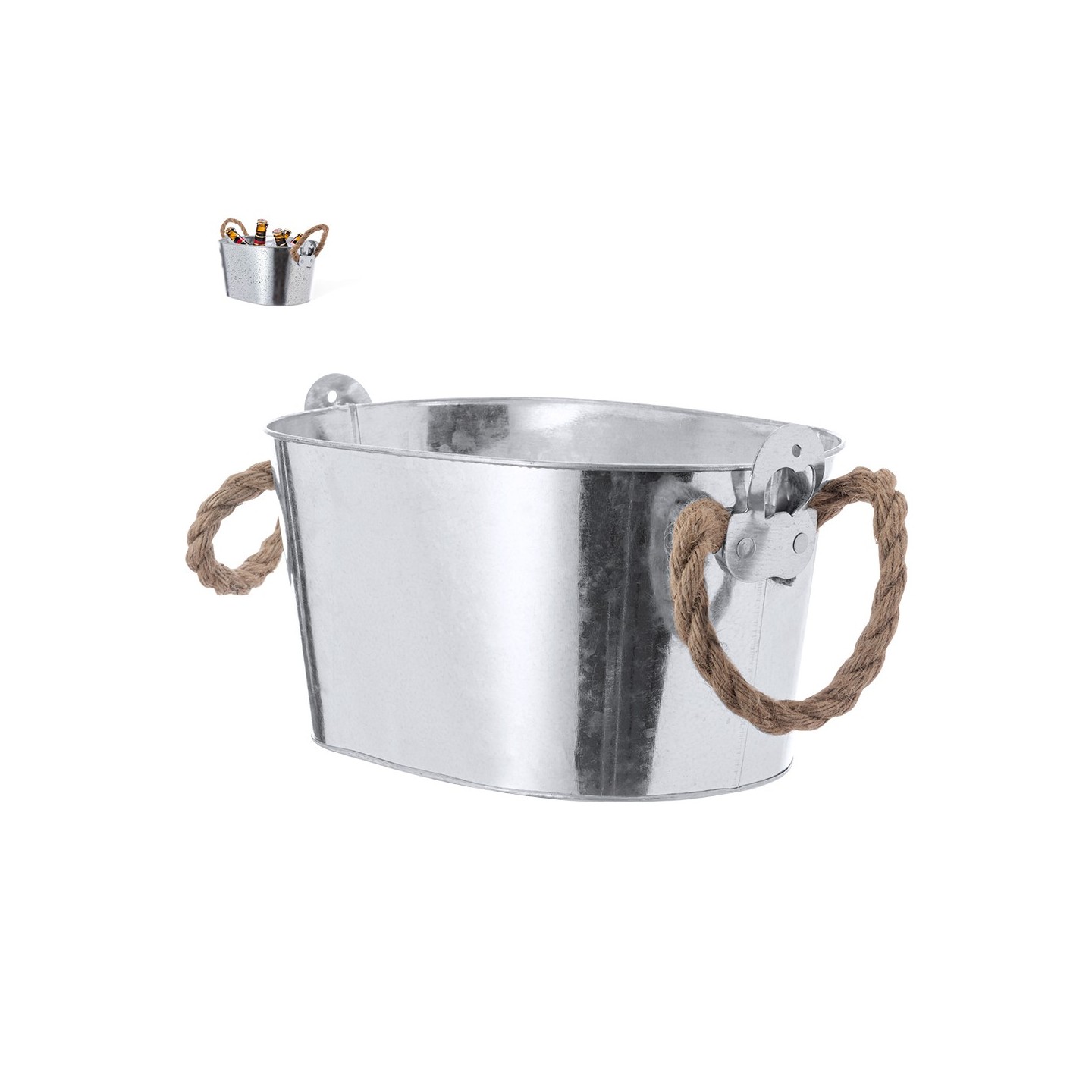 El Cubo Yuzux es metálico de 6 litros con asas de cuerda y abridores fijos. Conserva tus bebidas frías con estilo y funcionalidad.