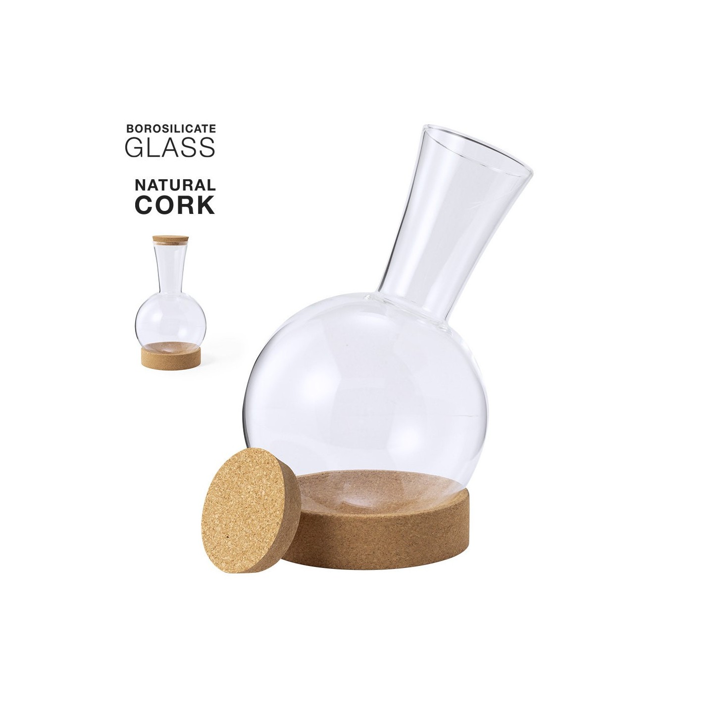 El decantador Seirten aporta elegancia y sostenibilidad en cristal y corcho. Capacidad de 1,7L. Presentado en caja eco. Regalo personalizado ideal para empresas.