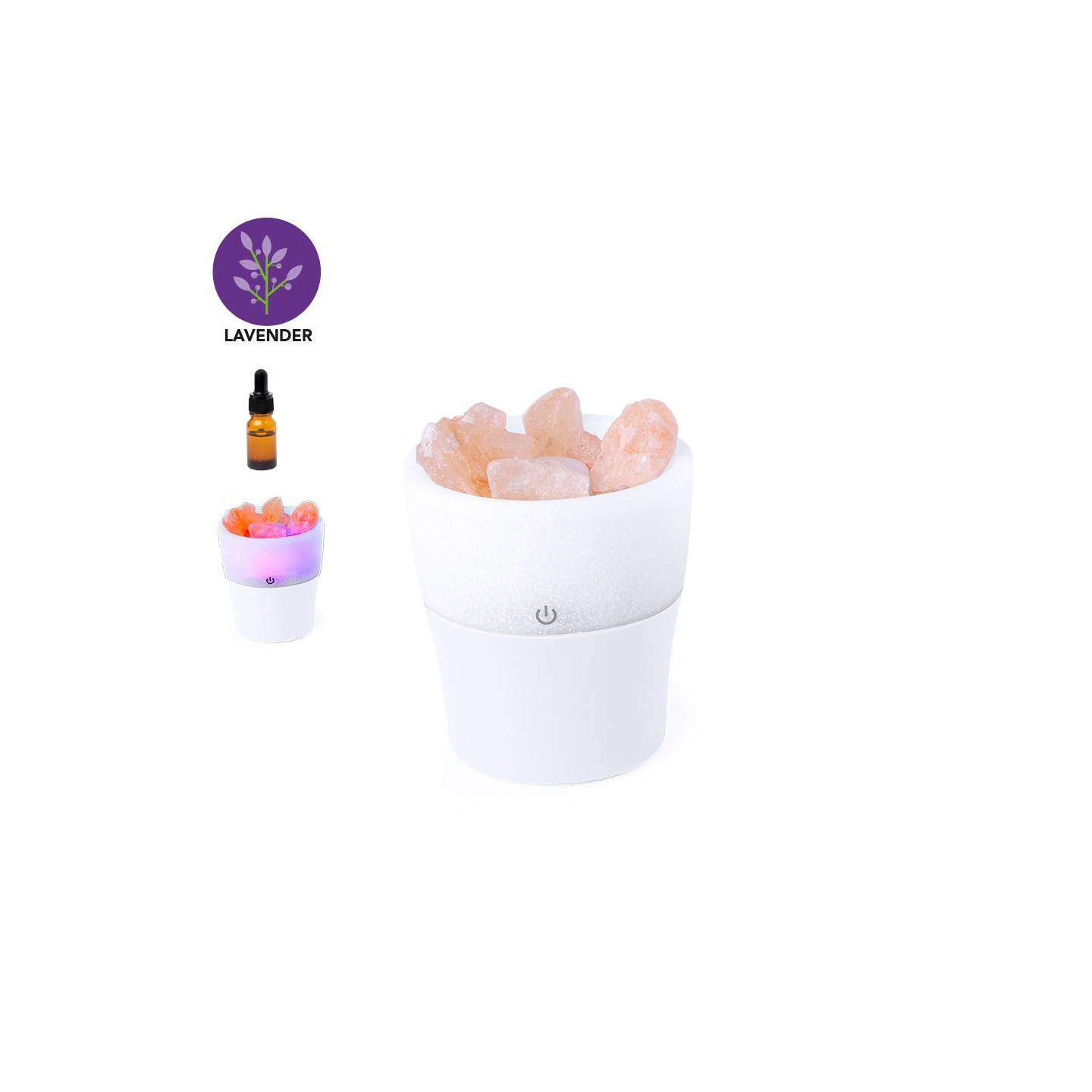 El Difusor Aromático Boucher es un humidificador elegante con difusor aromático, luz LED multicolor y aroma a lavanda. Personalizable con tu logo.