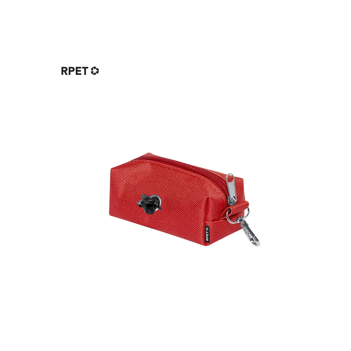 Dispensador de bolsas para mascotas en RPET, personalizable con tu logo. Práctico y eco-friendly, incluye 15 bolsas biodegradables. ¡Promociona tu marca de manera responsable!
