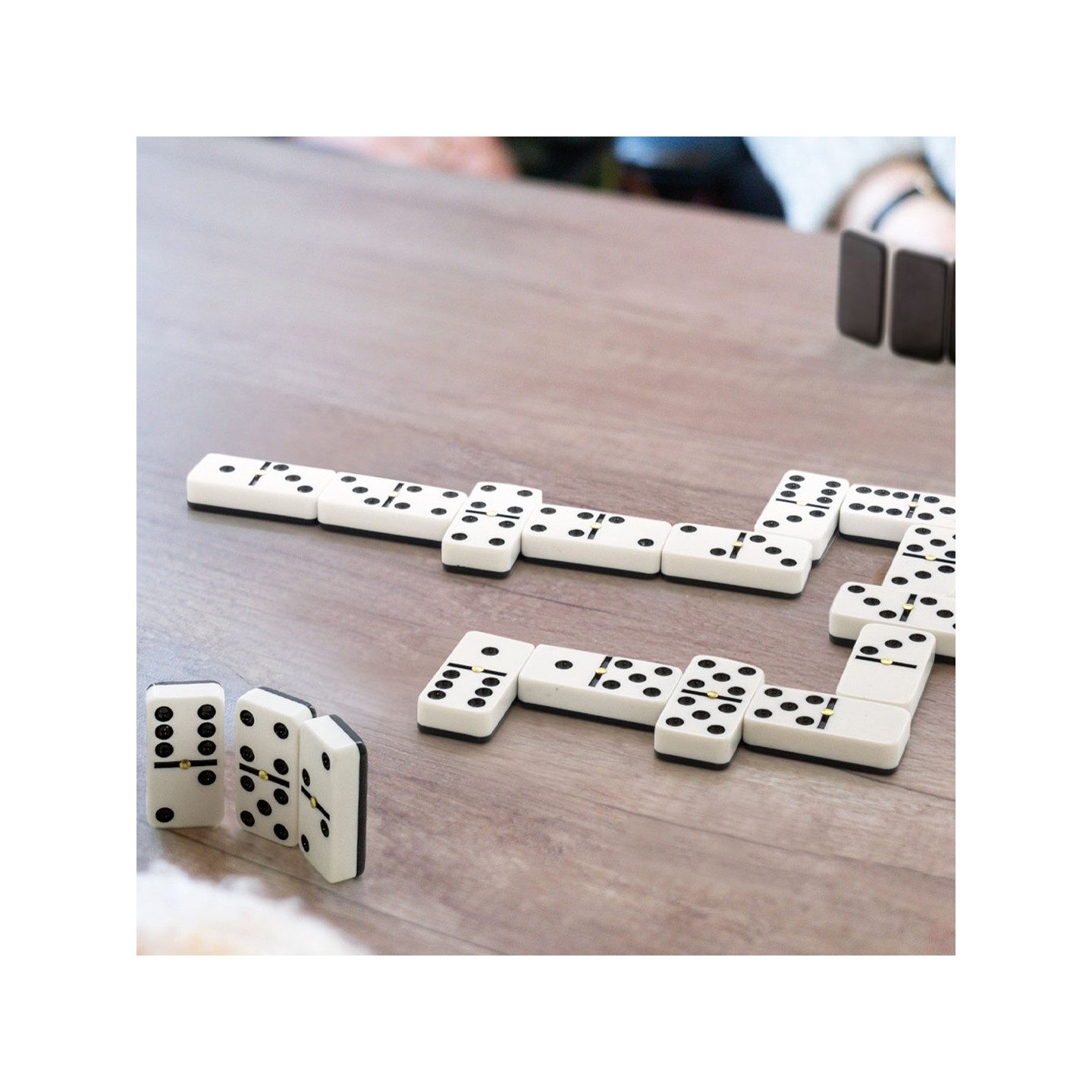 Este set incluye 28 fichas en color blanco, cada una con unas medidas de 2,5 x 5 cm, que son fáciles de manejar y perfectas para jugar con amigos y familiares. Las fichas están diseñadas con los números reglamentarios, siguiendo las normas estándar del dominó, lo que lo convierte en una opción ideal para jugadores serios que buscan cumplir con las reglas del juego mientras disfrutan de su tiempo libre.