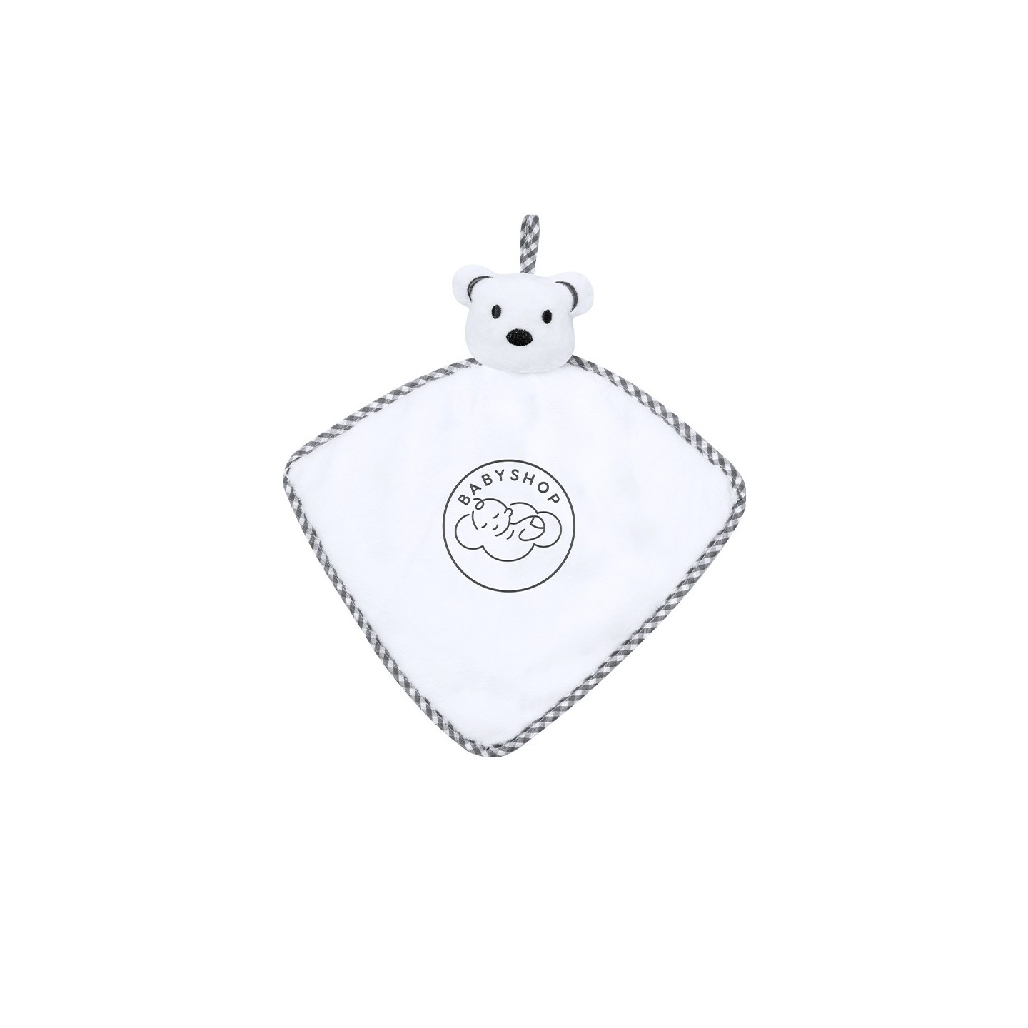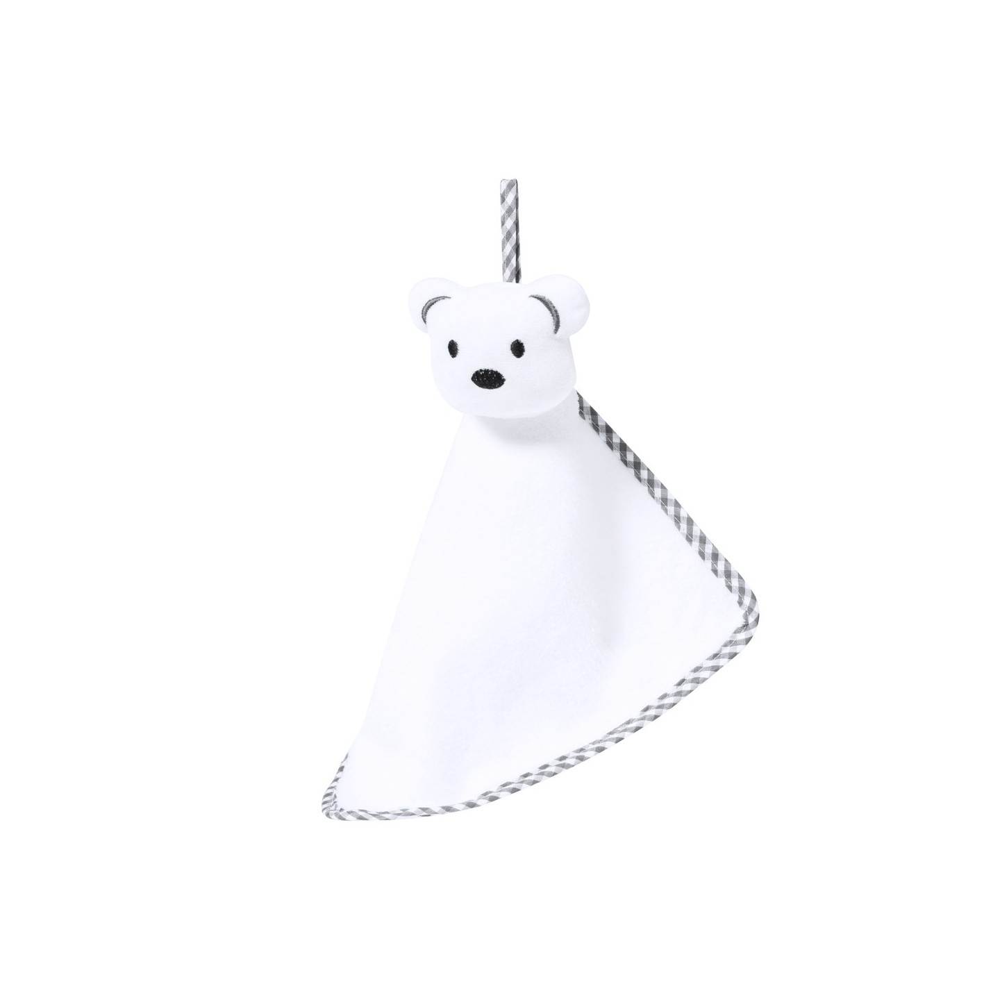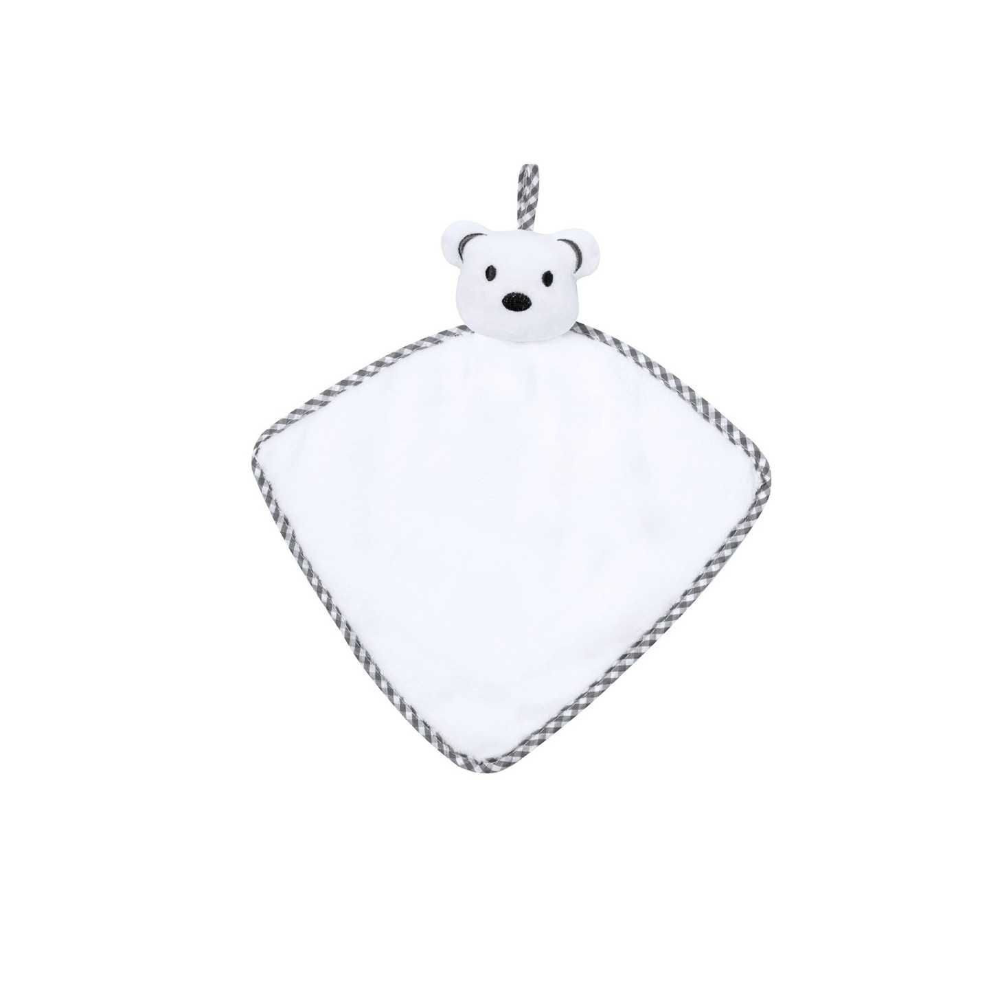 Tierno doudou de osito blanco, resistente y seguro. Con práctica asa de transporte. Personalizable para un regalo único.