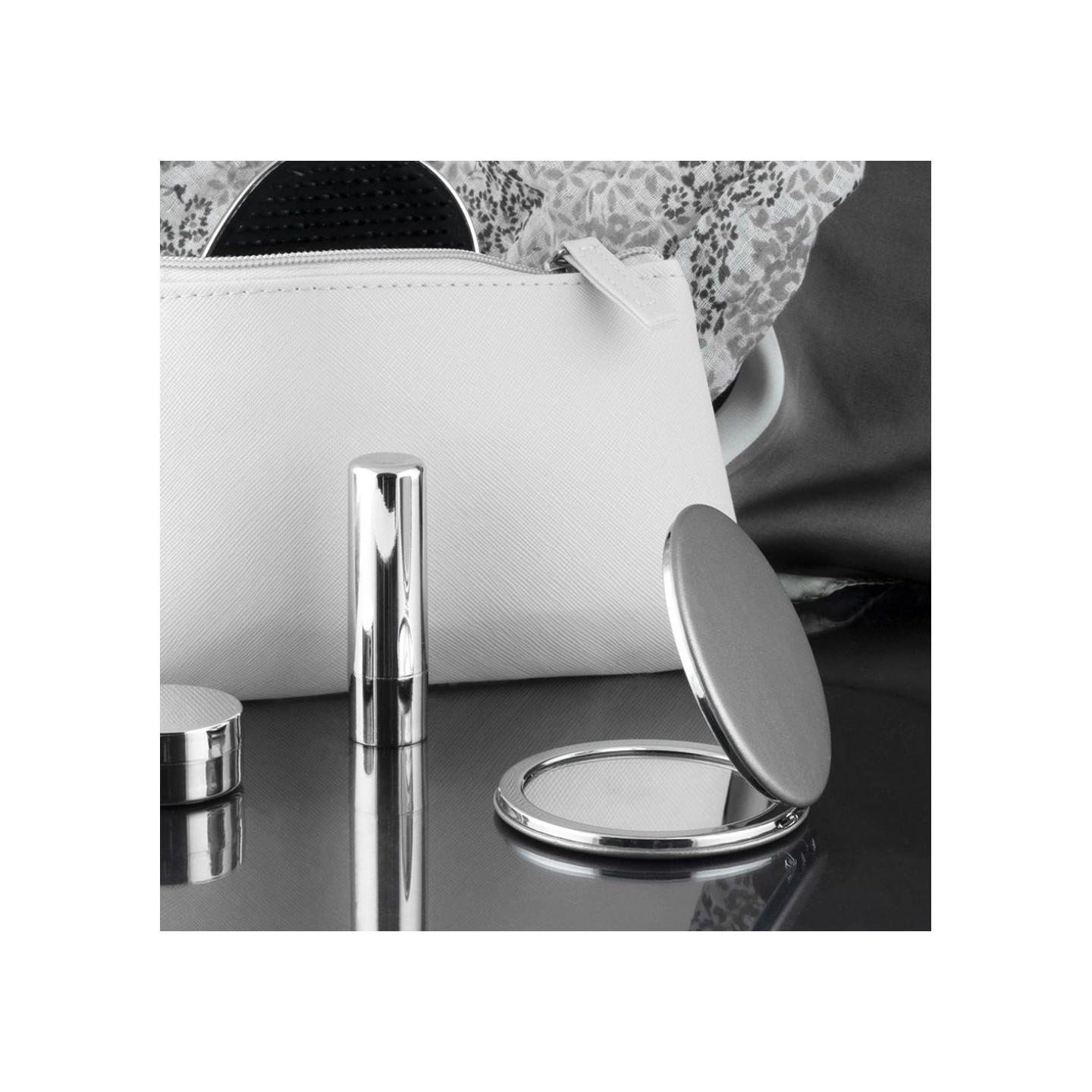 El Espejo Beverly, fabricado en plástico con un acabado metalizado, encarna la modernidad y la durabilidad. Su diseño compacto, con un diámetro de 6 cm y una altura de 1 cm, lo convierte en el compañero perfecto para llevar en tu bolso o neceser, siempre listo para un retoque impecable.