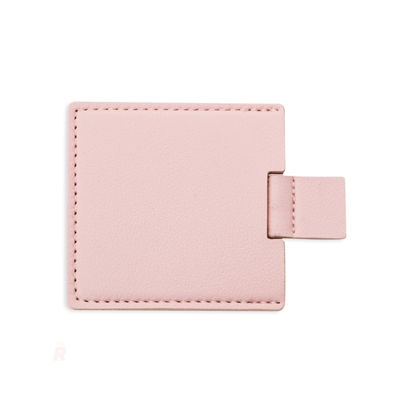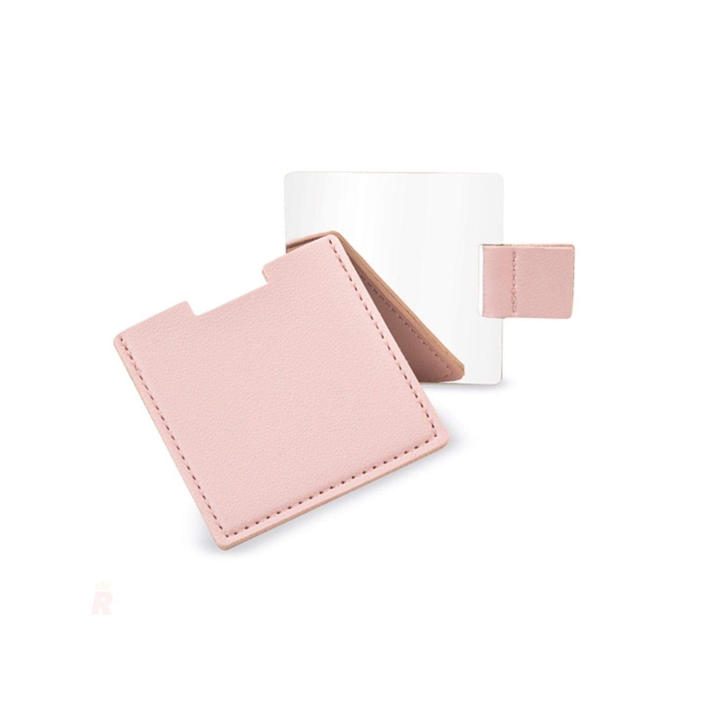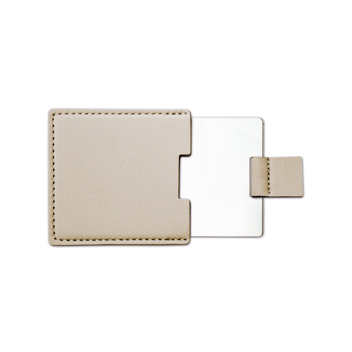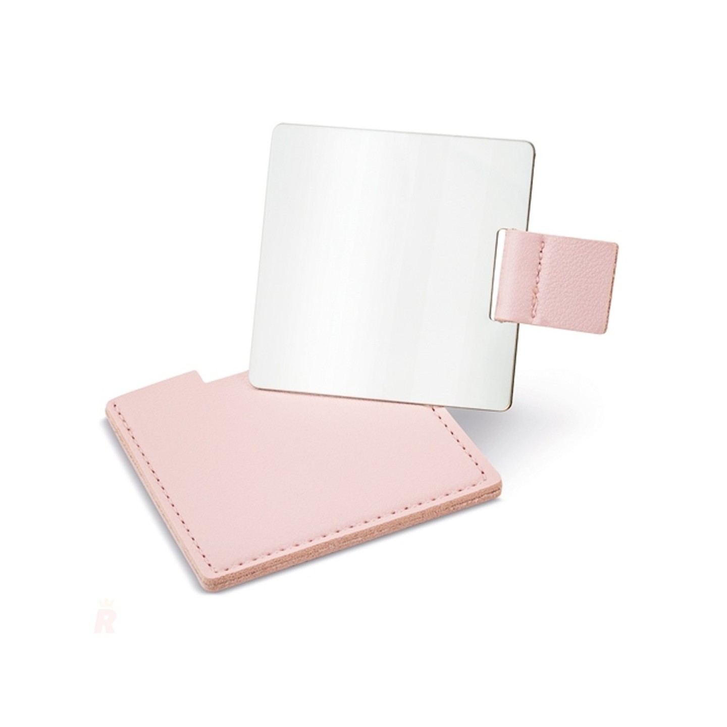 Espejo de bolsillo elegante en acero inoxidable, con funda y tirador de PU en colores pasteles. Personalízalo con logotipo como regalo promocional distinguido