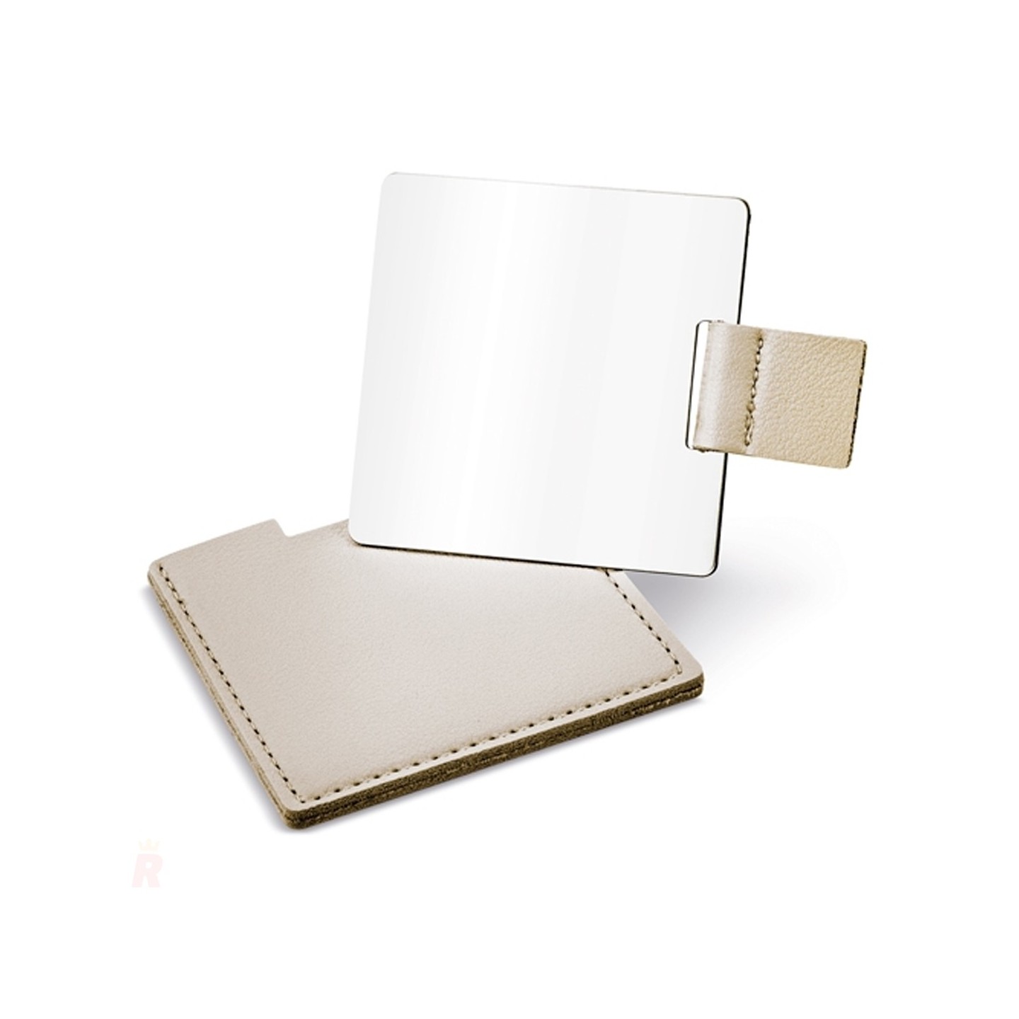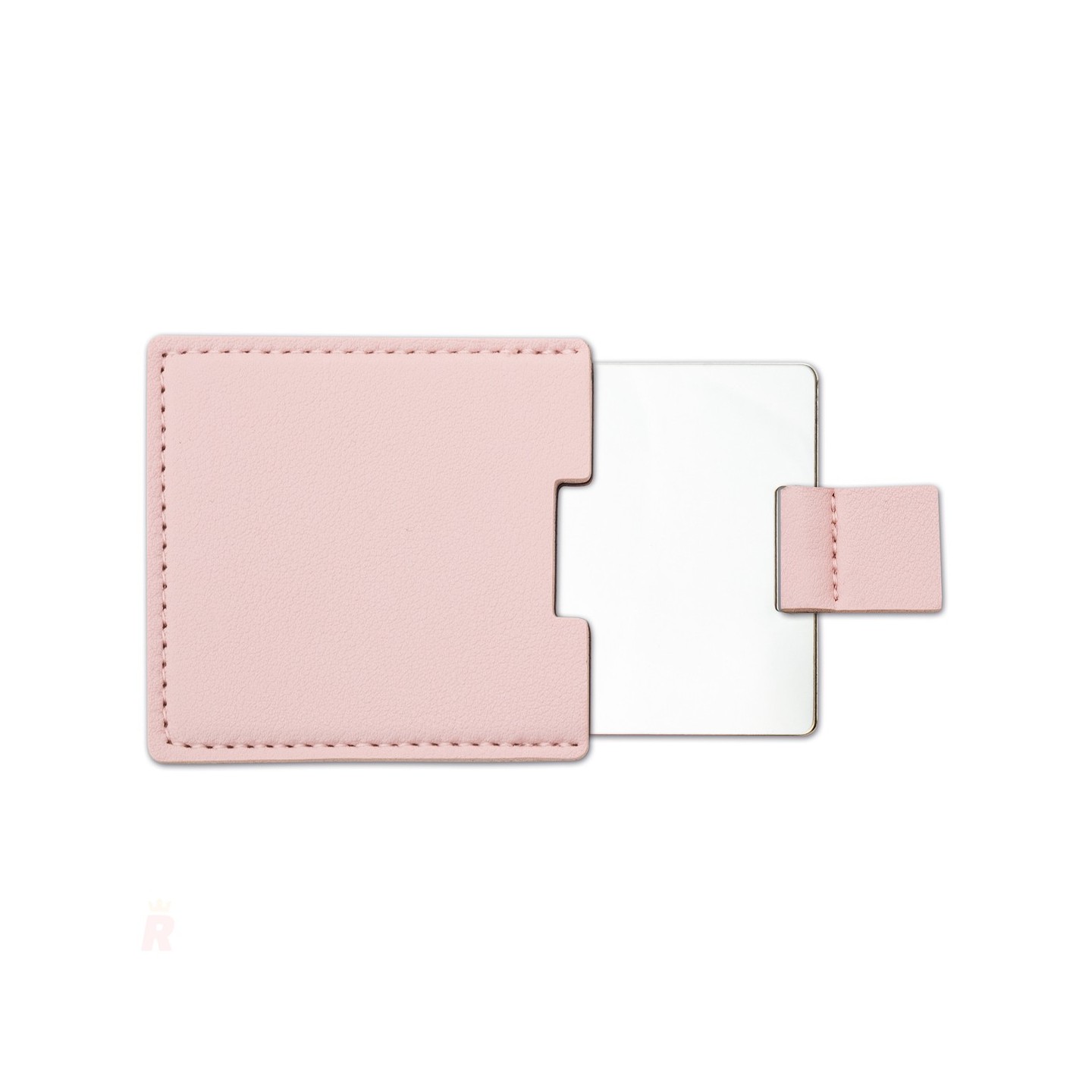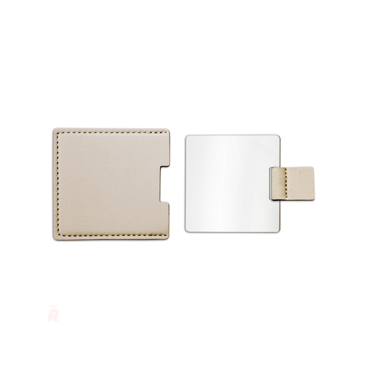 Espejo de bolsillo elegante en acero inoxidable, con funda y tirador de PU en colores pasteles. Personalízalo con logotipo como regalo promocional distinguido