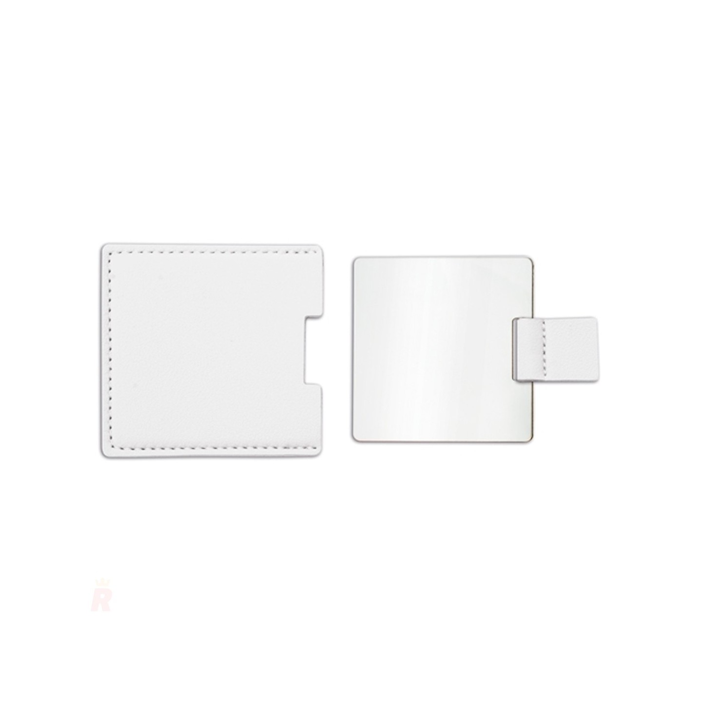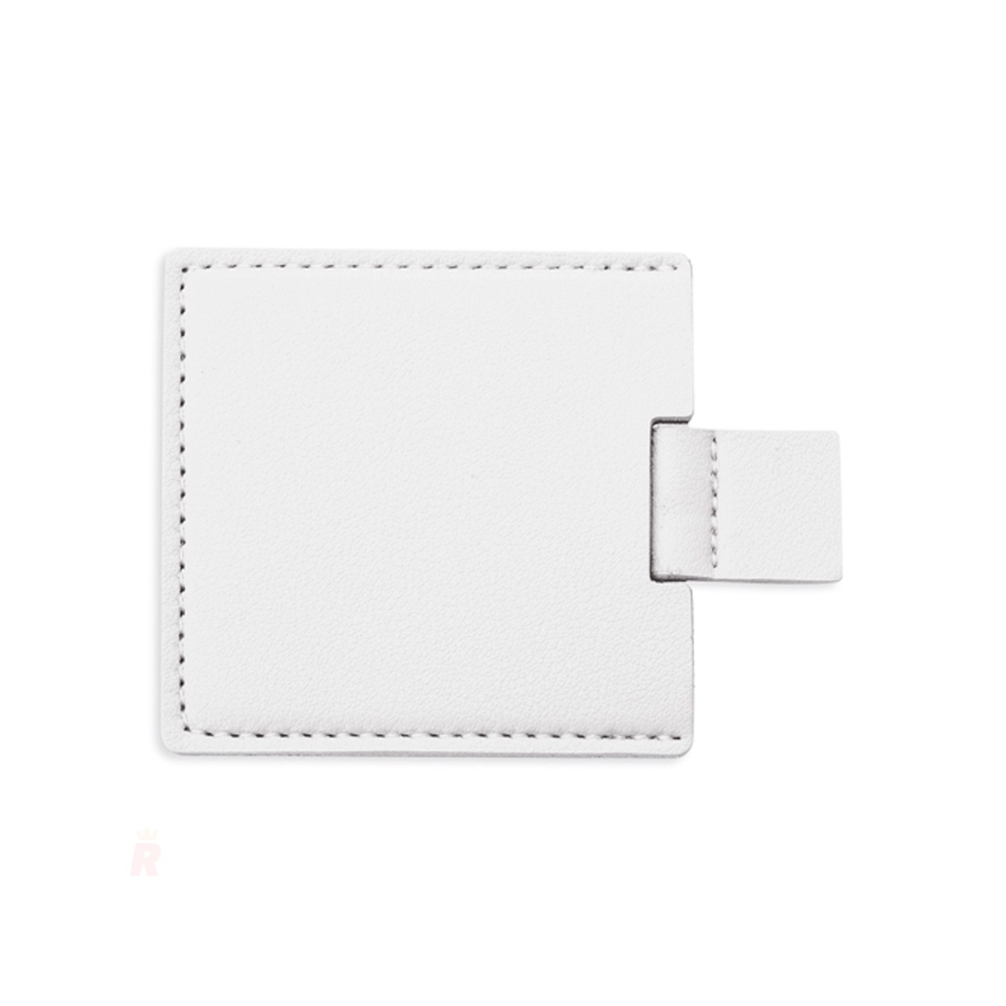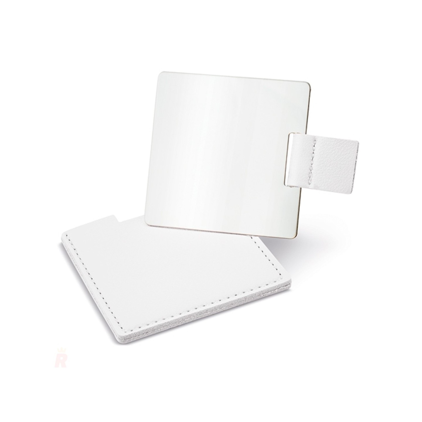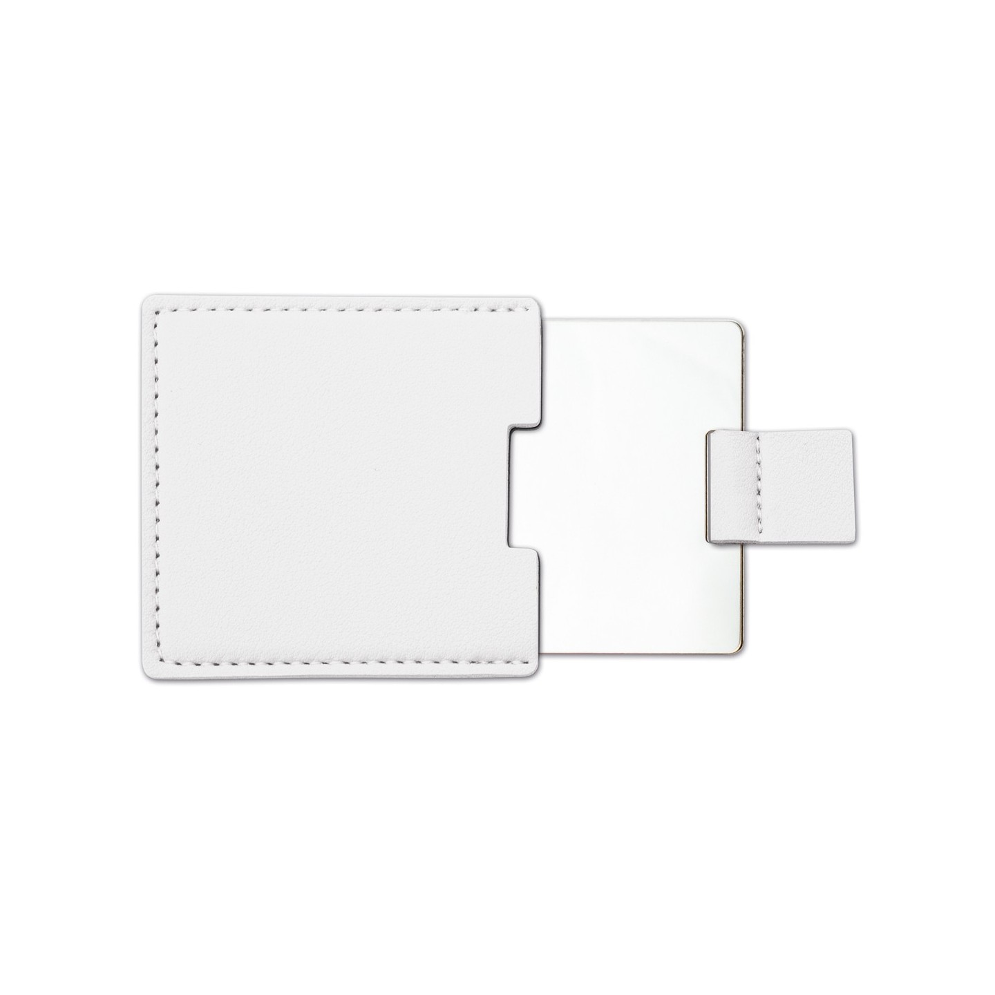 Espejo de bolsillo elegante en acero inoxidable, con funda y tirador de PU en colores pasteles. Personalízalo con logotipo como regalo promocional distinguido
