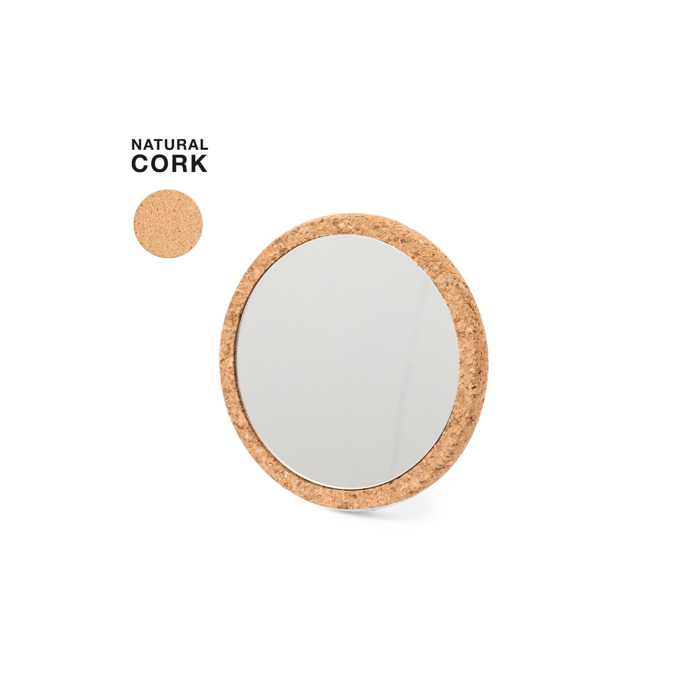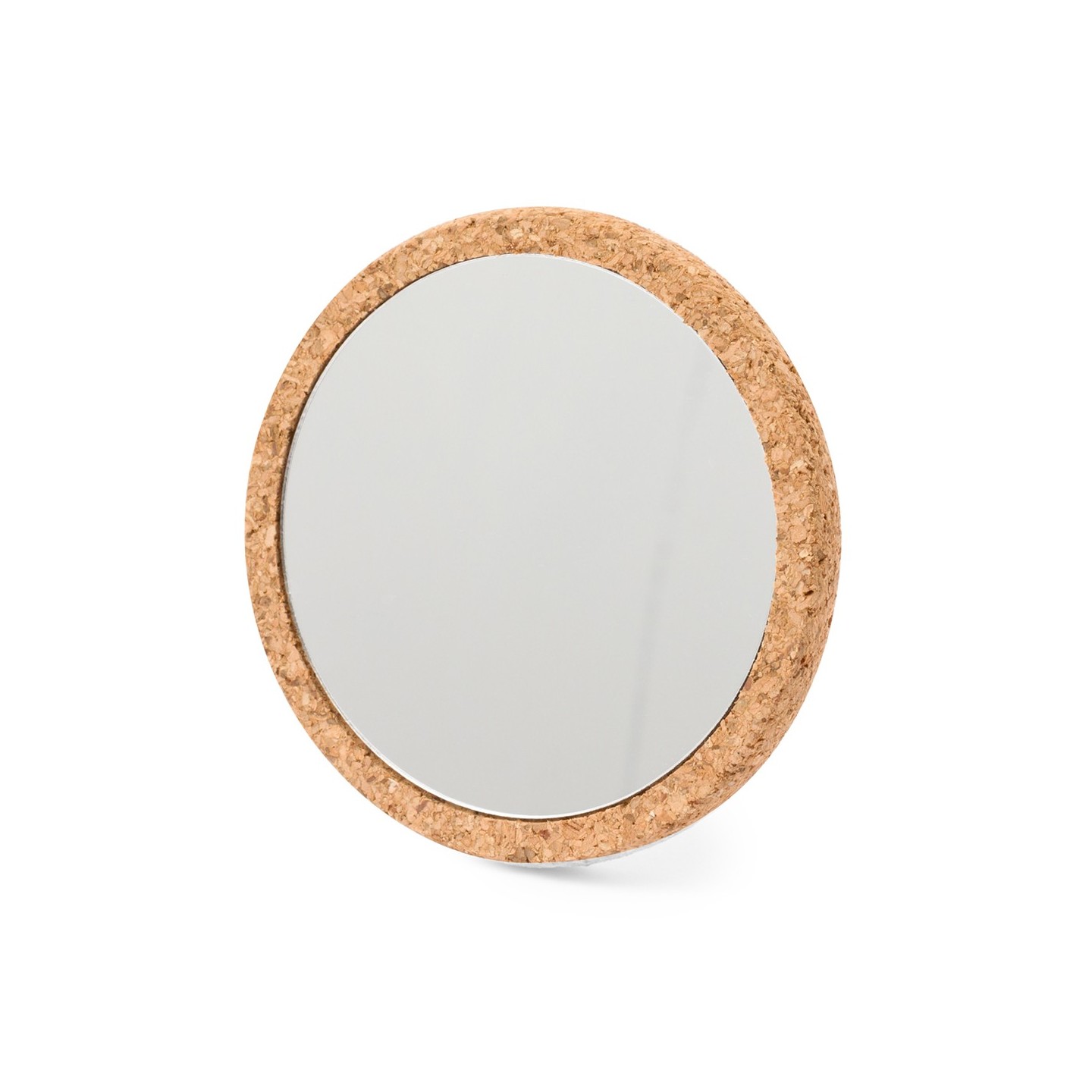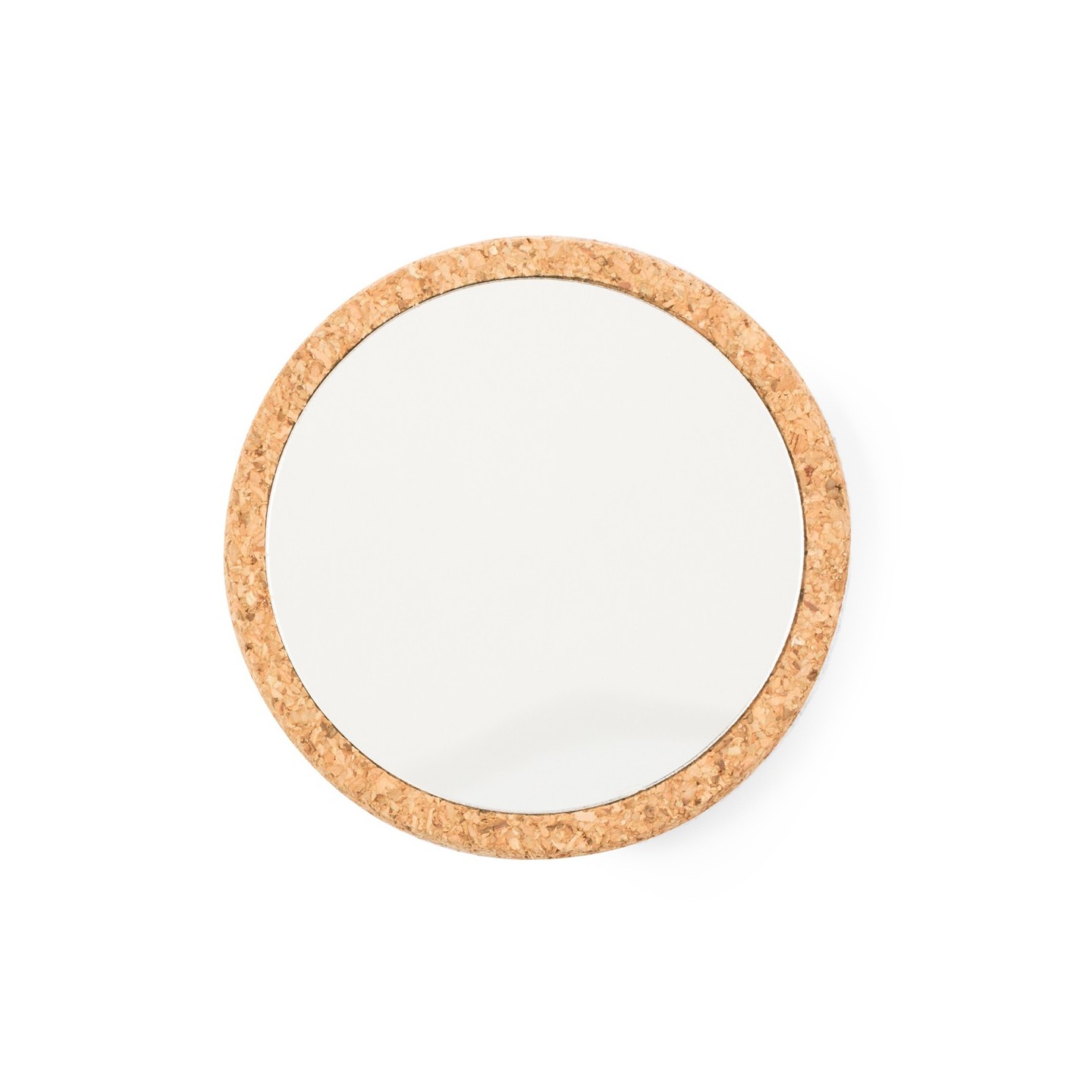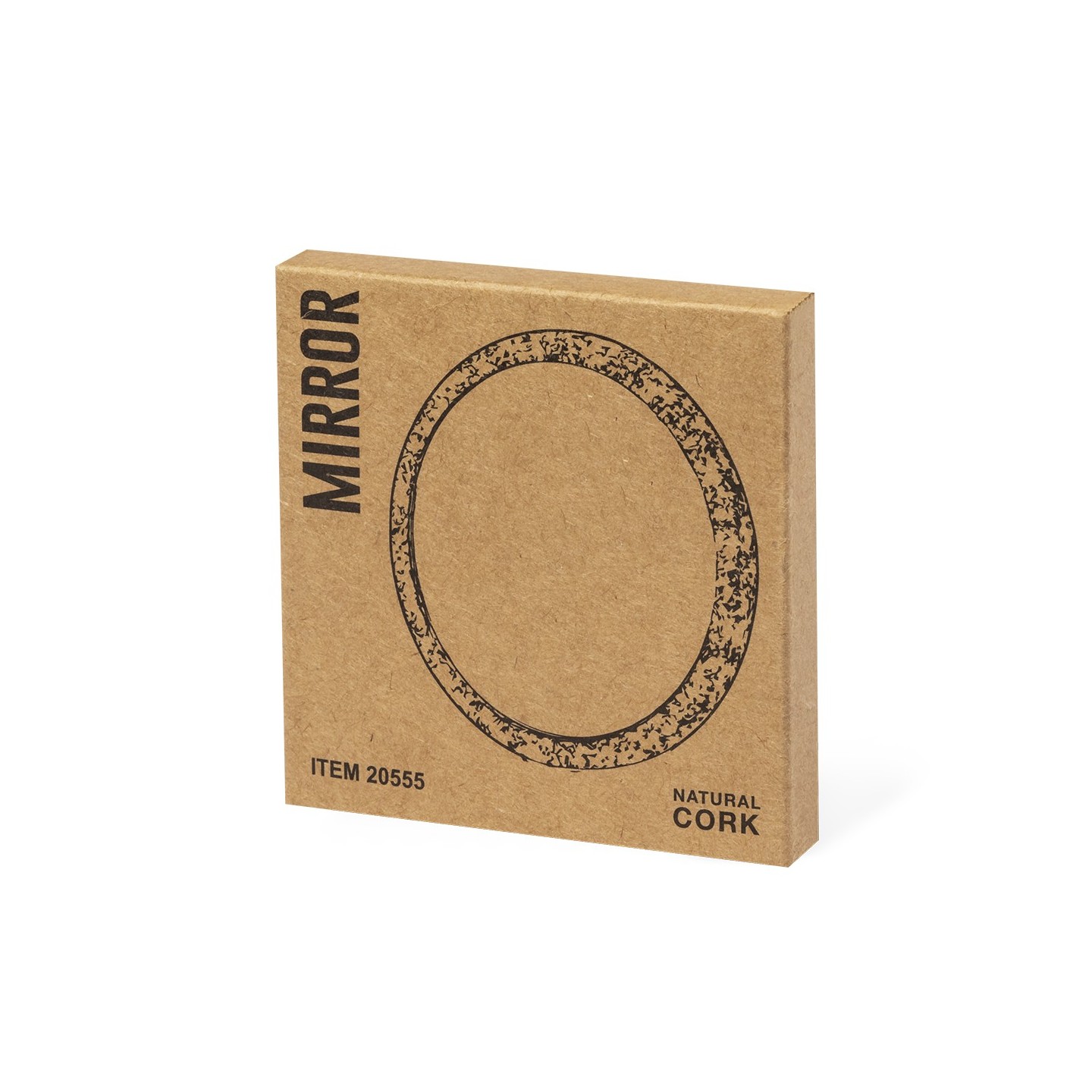 El Espejo Segenen es 1X de corcho portátil. Presentado en caja kraft. Ideal para retoques en cualquier lugar. Personalizable.