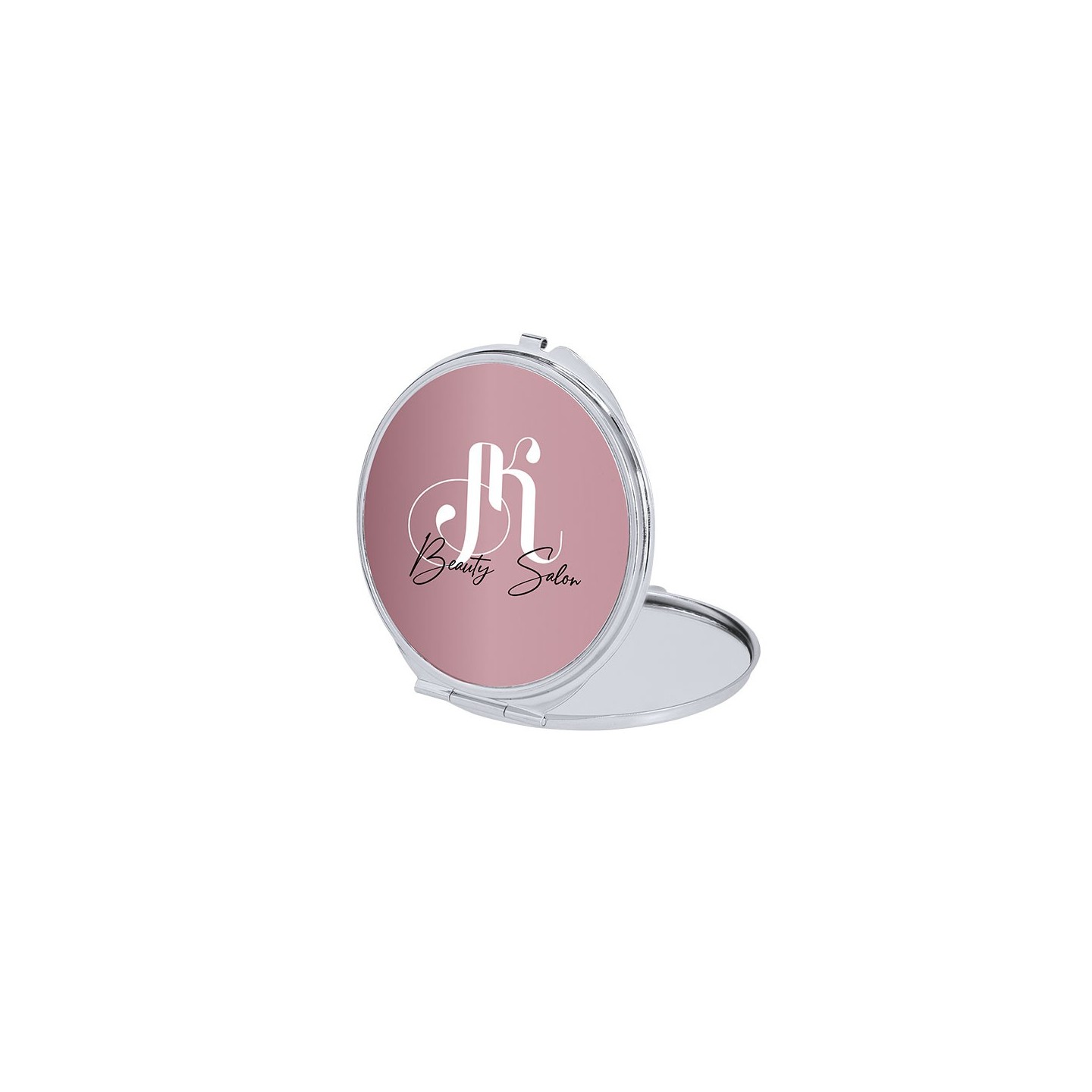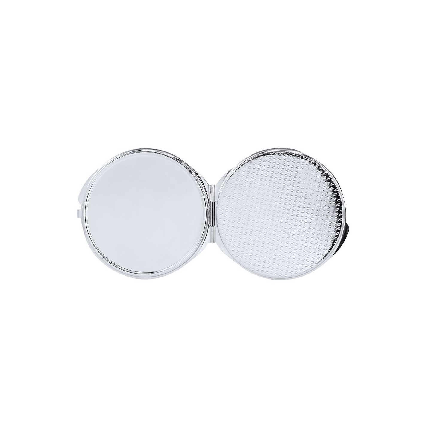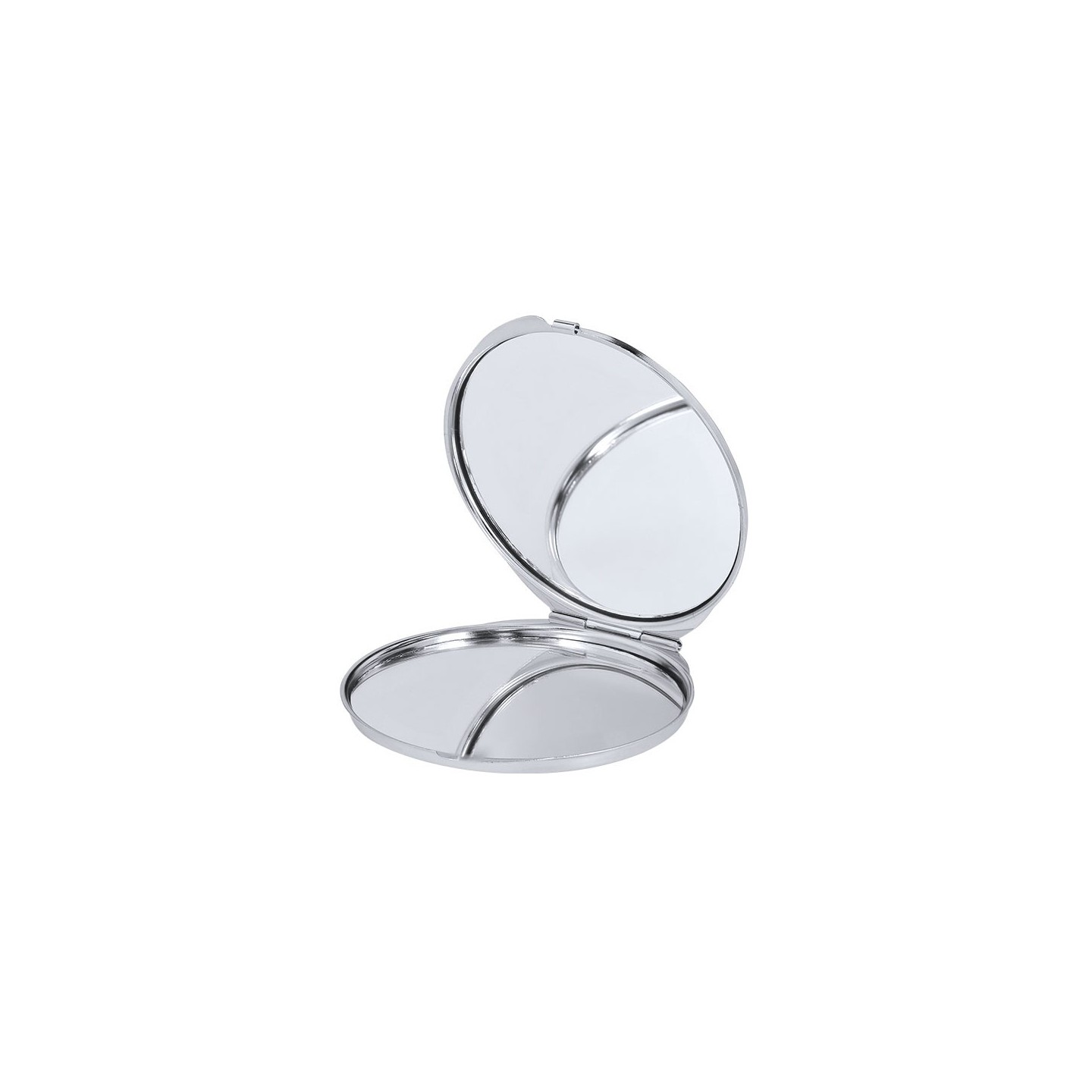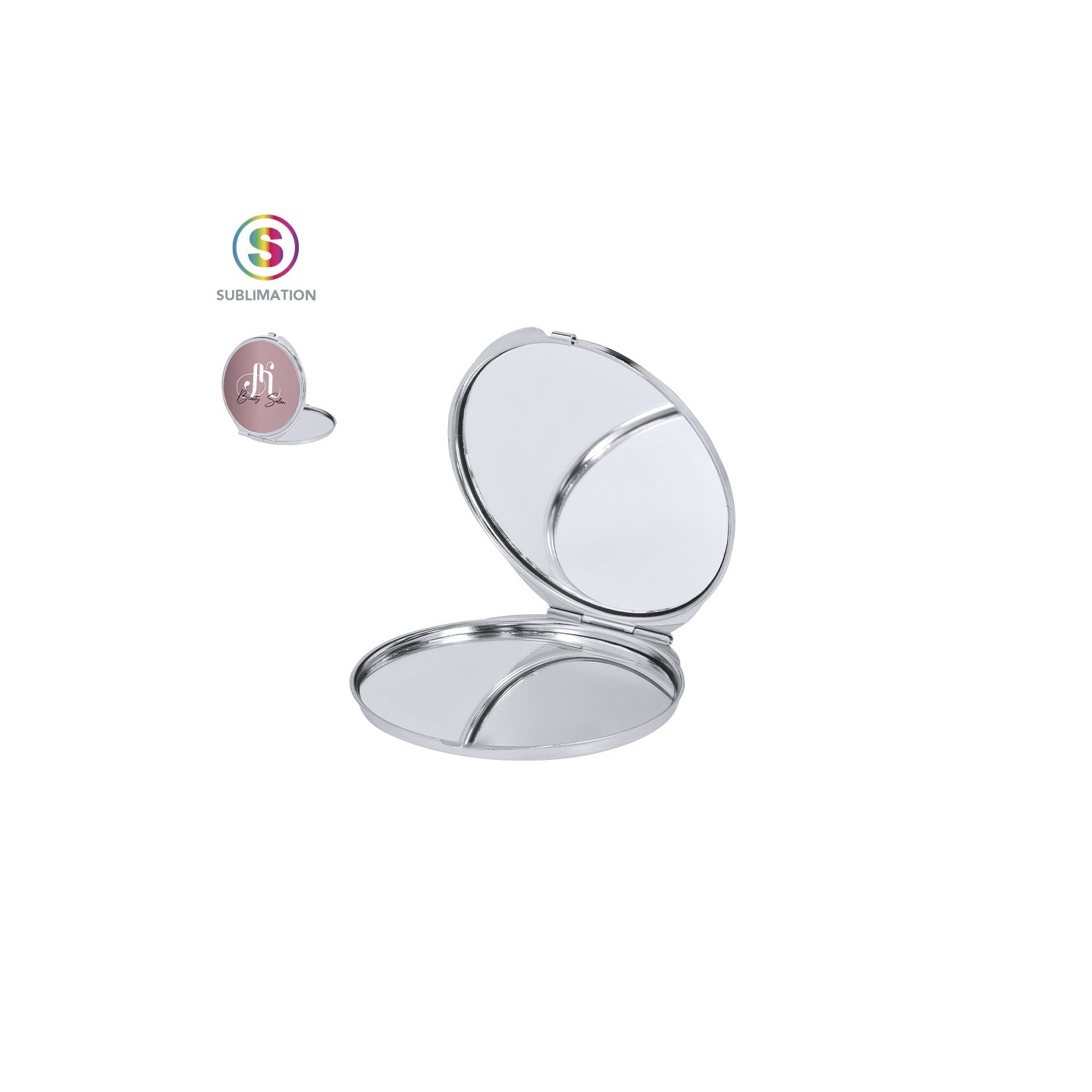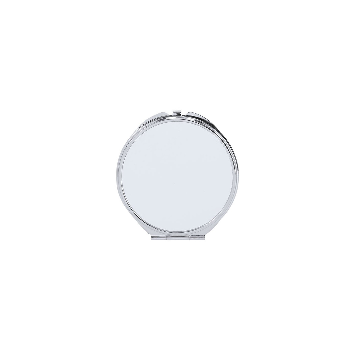 Espejo metálico plegable con dos espejos interiores (1X y 2X). Placa para sublimación, personalizable con tu diseño. Compacto, práctico y elegante.