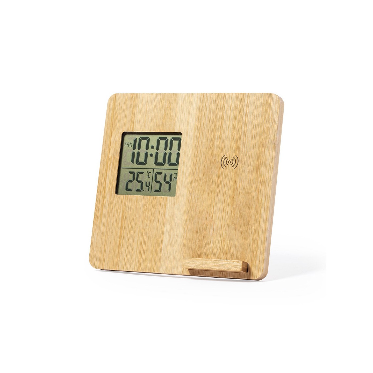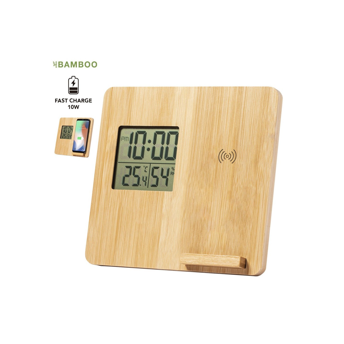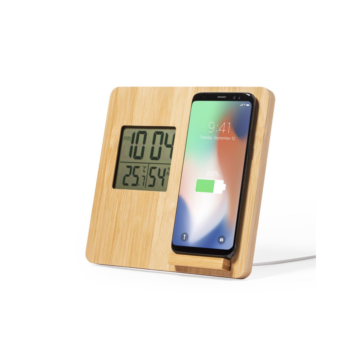 La Estación Meteorológica Cargador Fiory es de diseño nature en bambú, cargador inalámbrico de carga rápida, termómetro e higrómetro. Funcionalidad y estilo en un solo regalo.