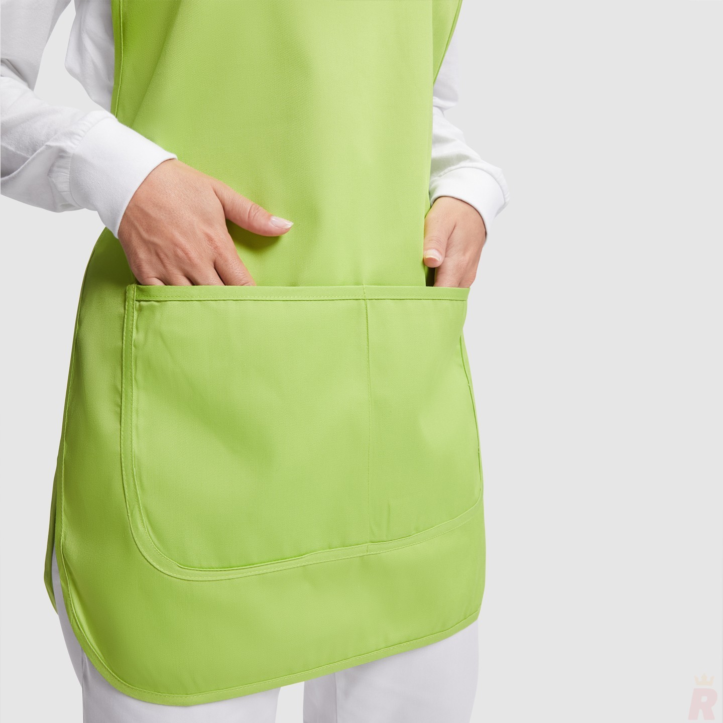Su estructura reversible permite ampliar su durabilidad y versatilidad, adaptándose al ritmo de trabajo diario. Incluye dos amplios bolsillos frontales (37,5 x 21 cm), perfectos para llevar herramientas, utensilios o accesorios de trabajo, manteniéndolos siempre a mano. Además, sus cintas laterales ajustables proporcionan un ajuste perfecto y personalizado, adaptándose cómodamente a cualquier cuerpo gracias a su talla única unisex.