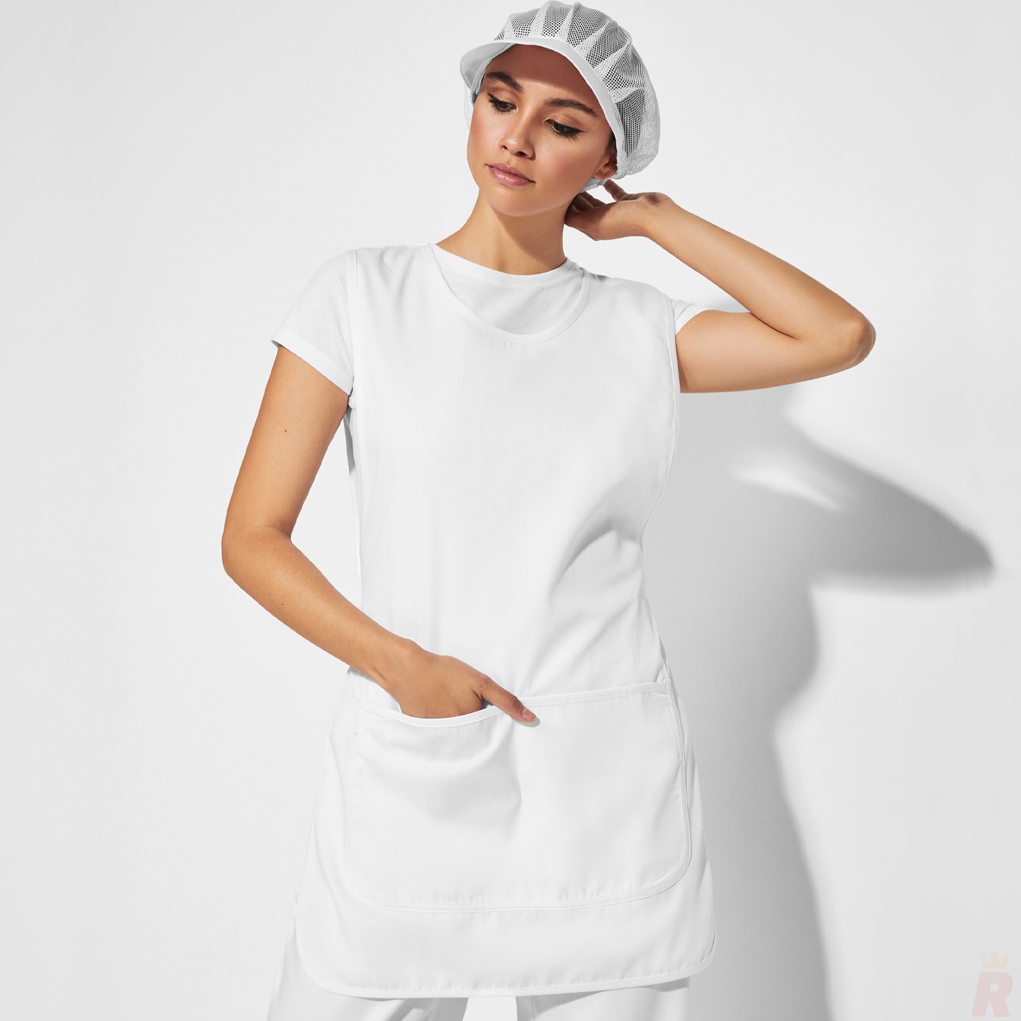Con un diseño limpio, sin costuras superfluas, y acabado liso y profesional, esta casulla es ideal para personalizar con el logotipo de tu empresa, ya sea para personal sanitario, personal de limpieza, estética, hostelería o alimentación. Incorpora una etiqueta removible para una personalización más limpia y discreta.