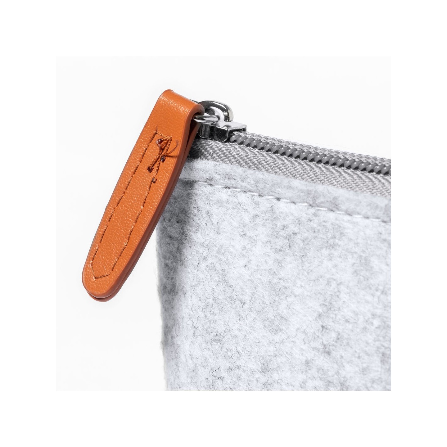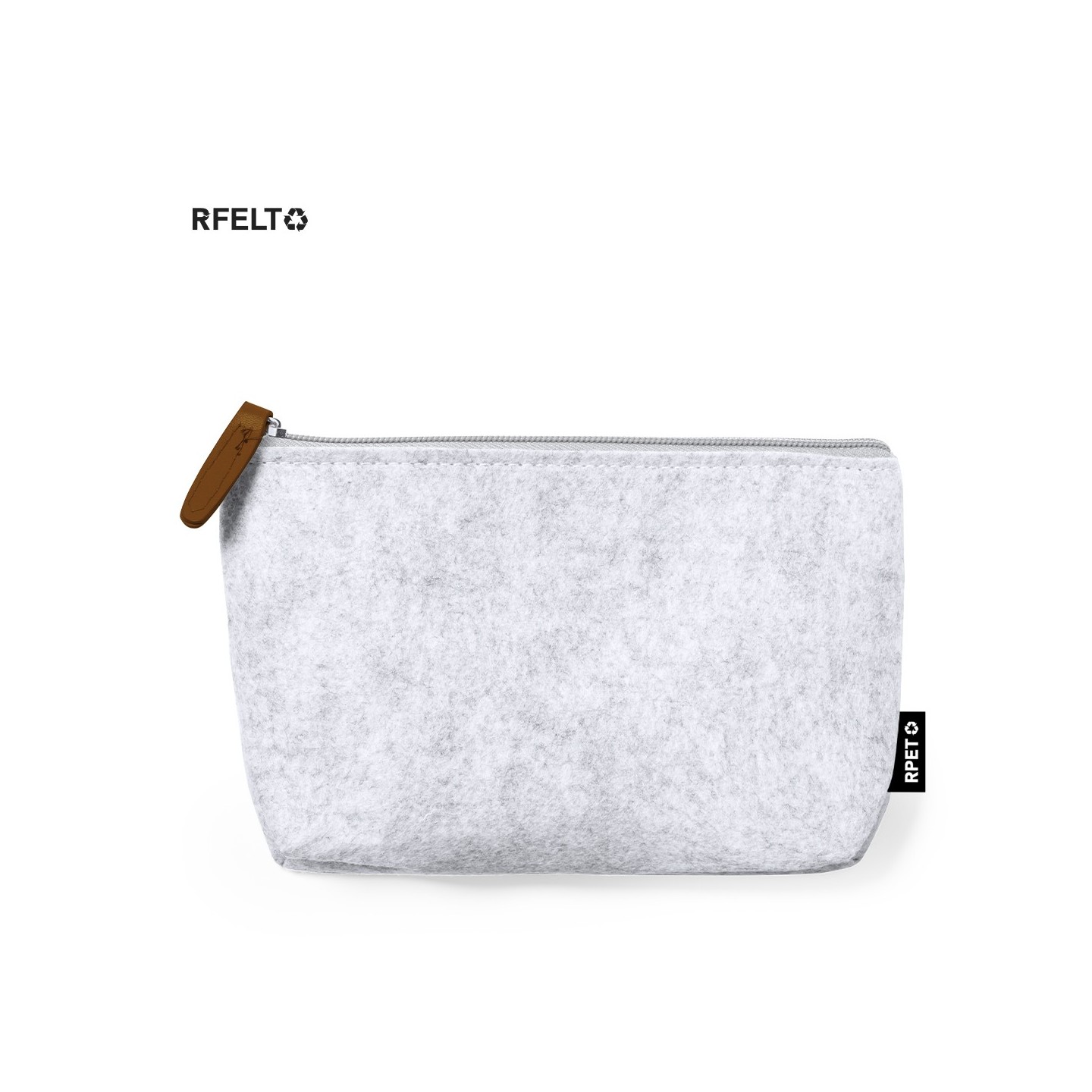 Estuche Bricex nature en fieltro RPET resistente. Cierre de cremallera y tirador de polipiel. Sostenibilidad y estilo para tus pertenencias.
