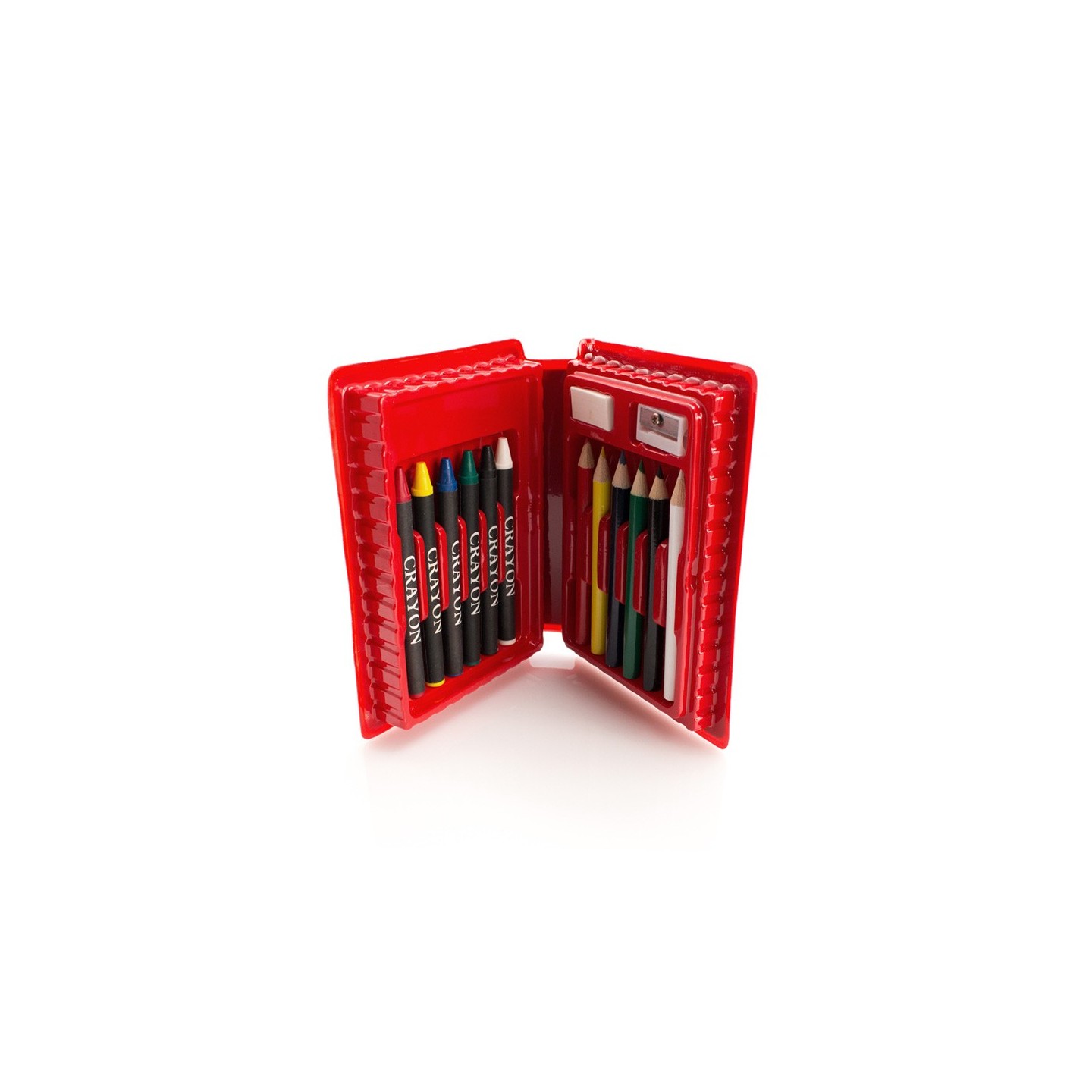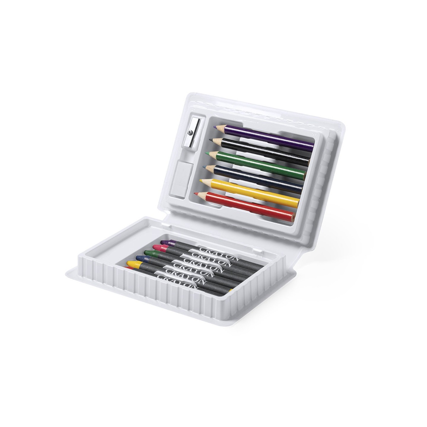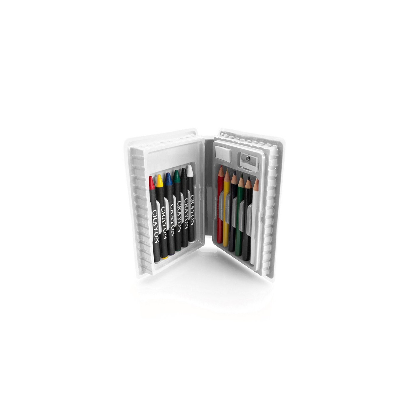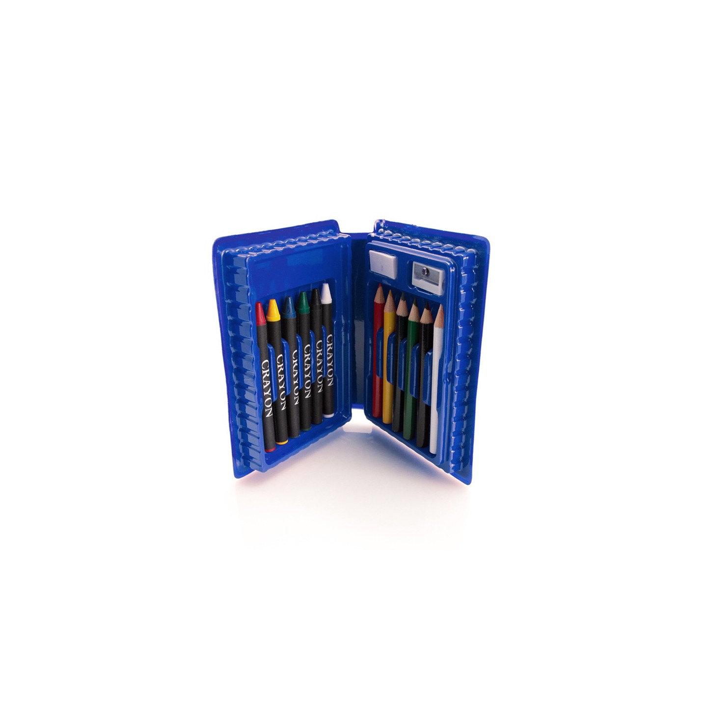 Estuche Clown con 14 piezas de colores brillantes. Goma, sacapuntas, ceras y lápices en un estuche seguro. Creatividad y organización en un set completo.