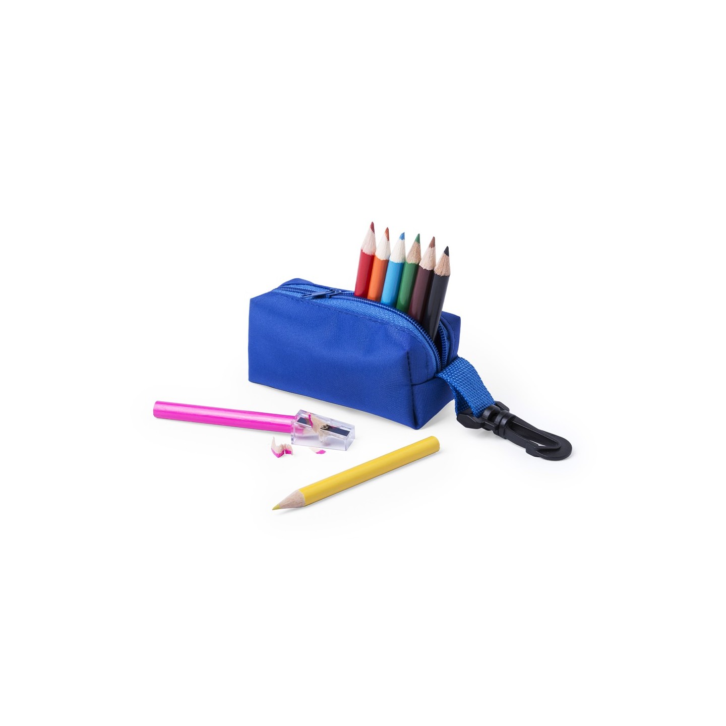 Estuche Migal de poliéster 420D con cremallera a juego y accesorio mosquetón. Incluye sacapuntas y 8 lápices de cuerpo redondo y acabado brillante.