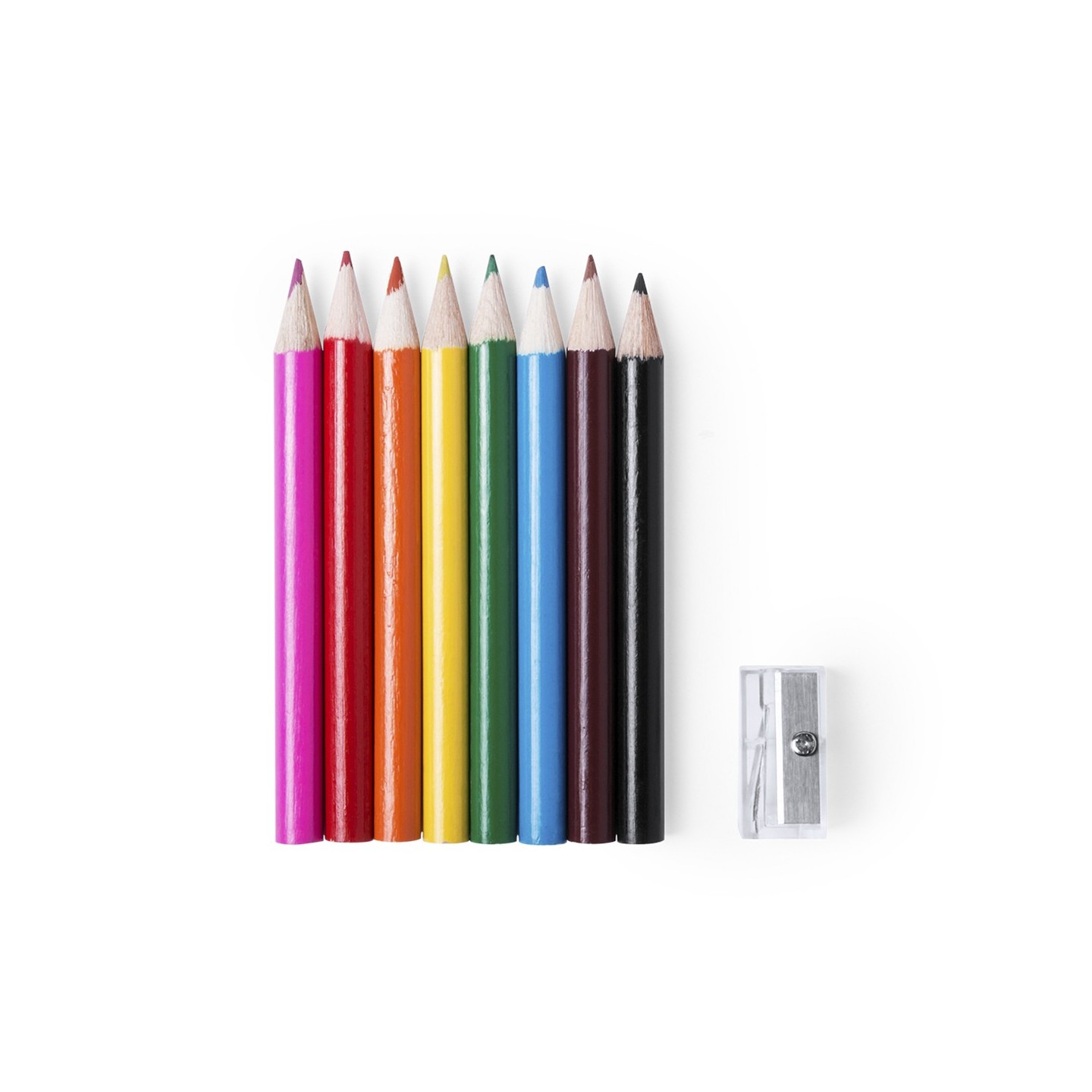 Este estuche viene equipado con un sacapuntas de alta calidad, perfecto para mantener tus lápices siempre afilados y listos para usar. Además, incluye 8 lápices de cuerpo redondo y acabado brillante en una variada gama de colores, ofreciéndote una amplia paleta para dar vida a tus creaciones.