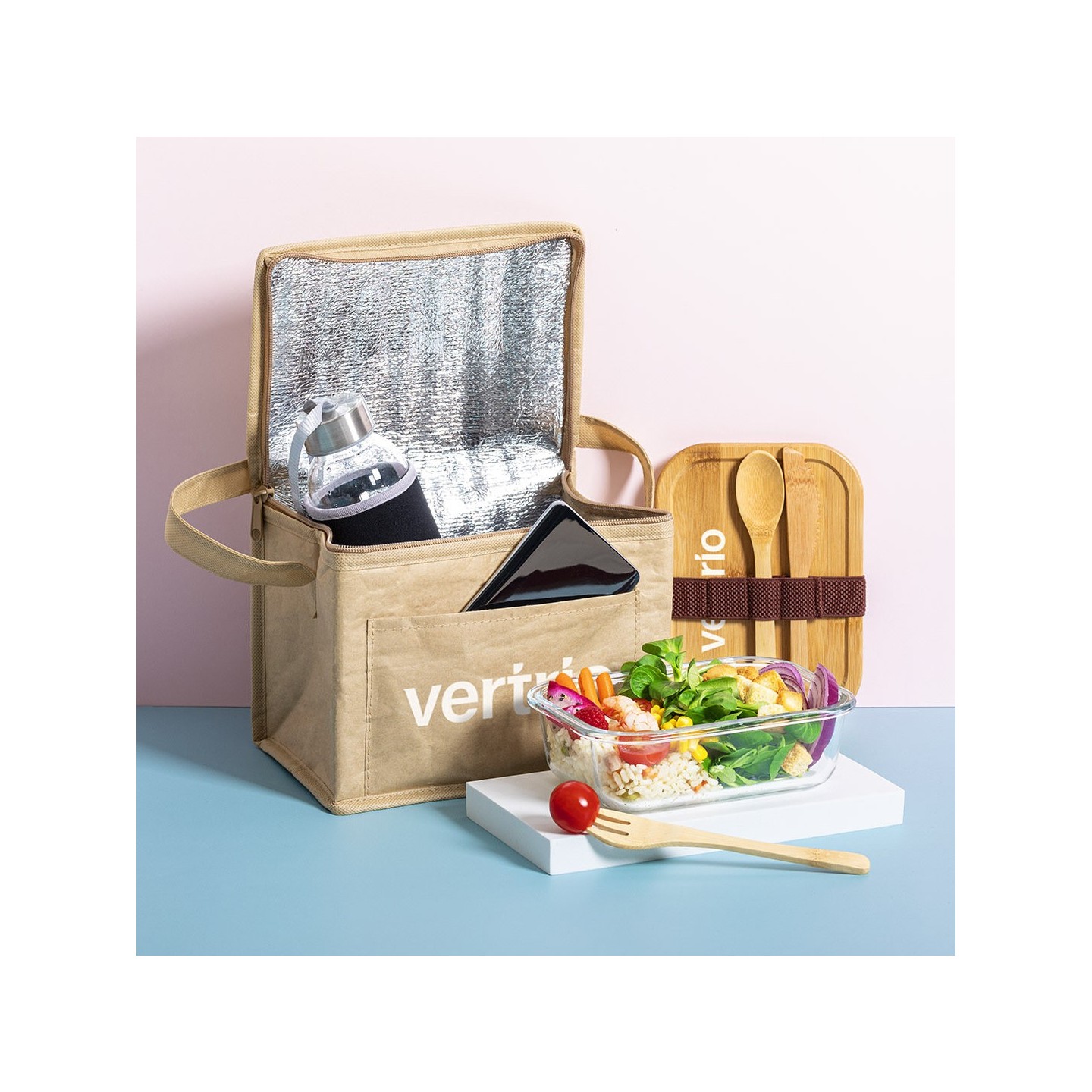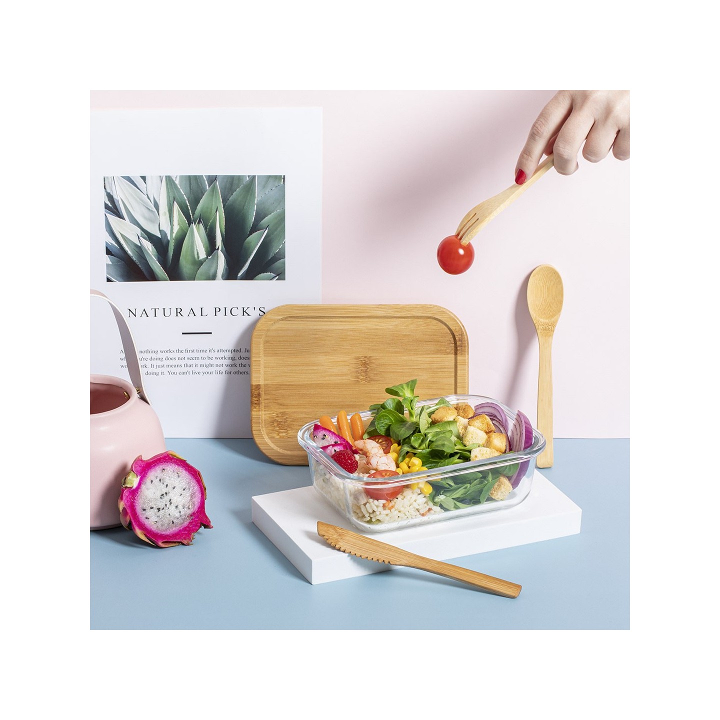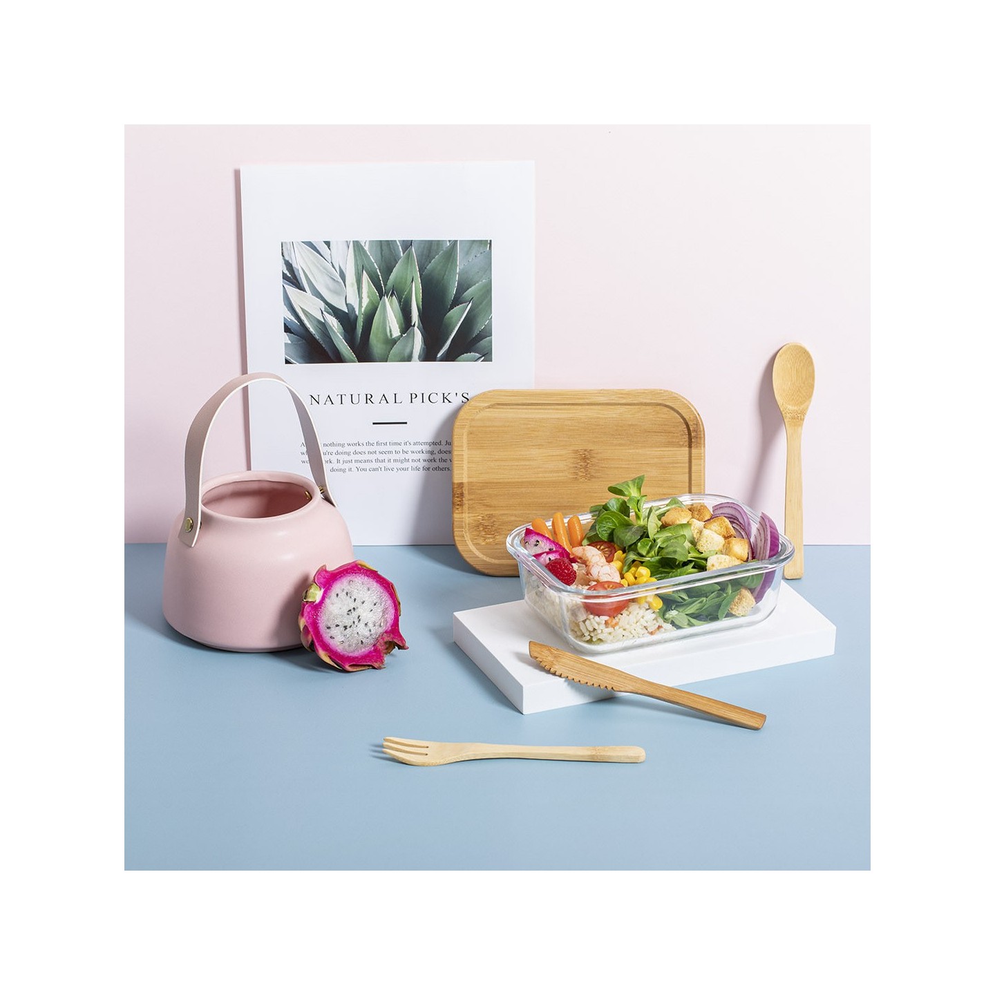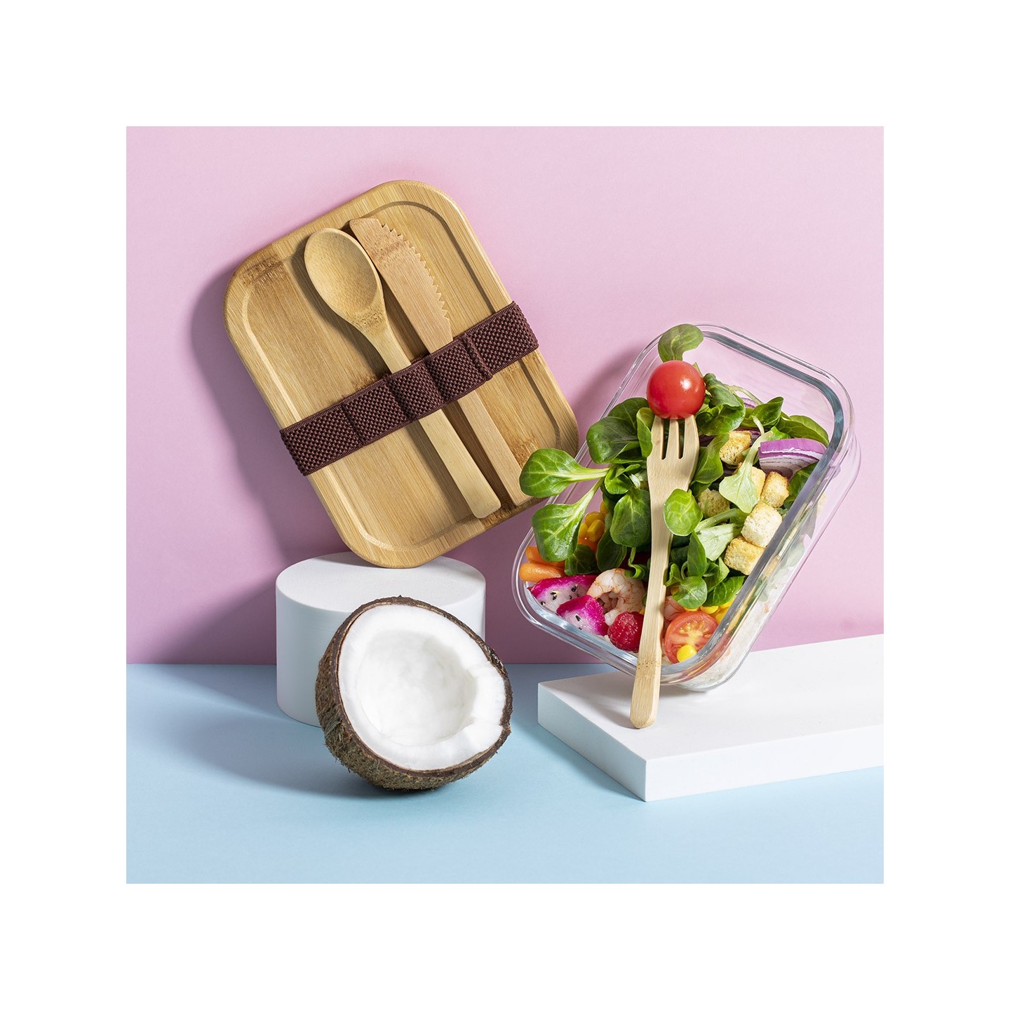 La fiambrera Bejar es práctica y ecológica, con tapa hermética de bambú y capacidad de 700 ml. Además, incluye cubiertos y viene en una caja individual.