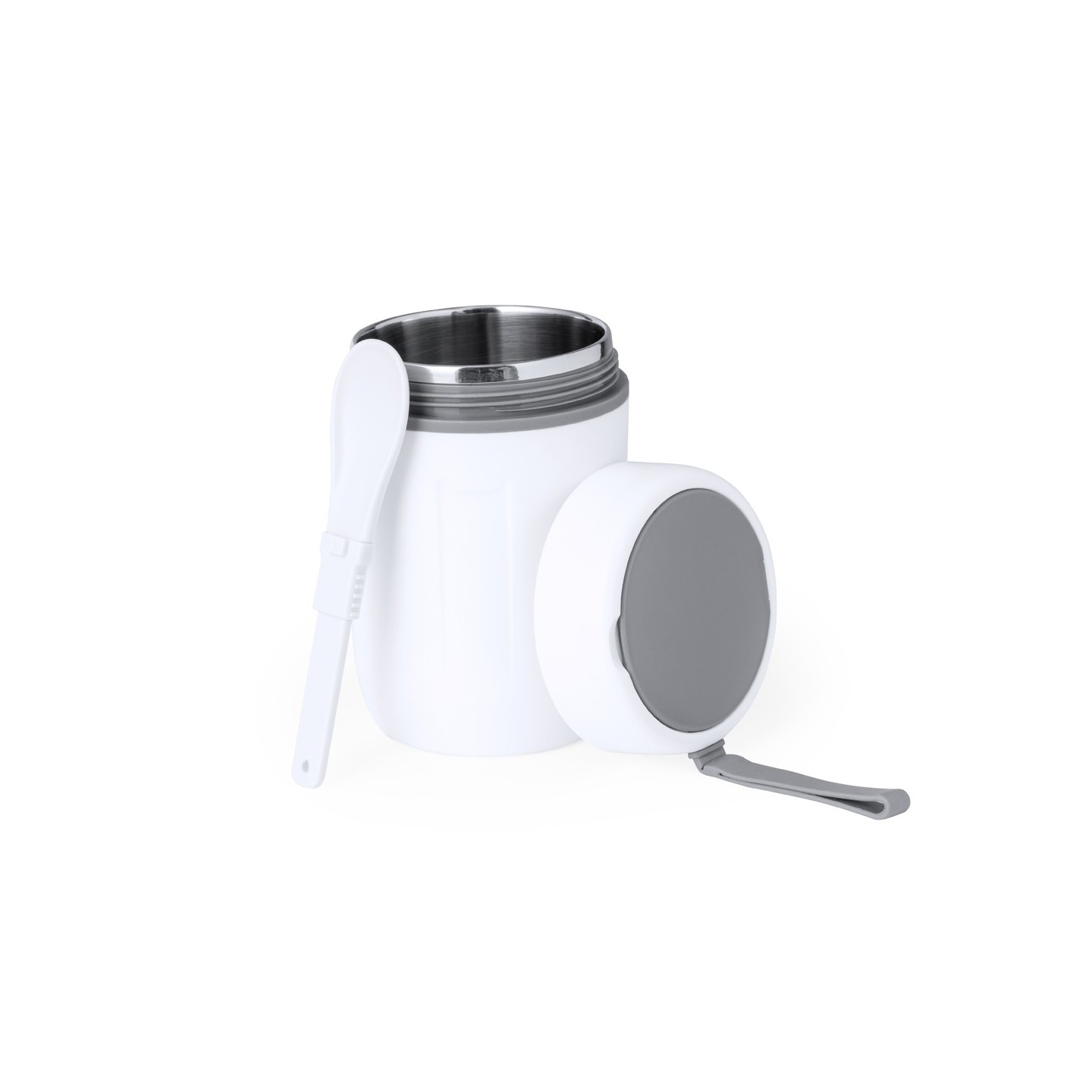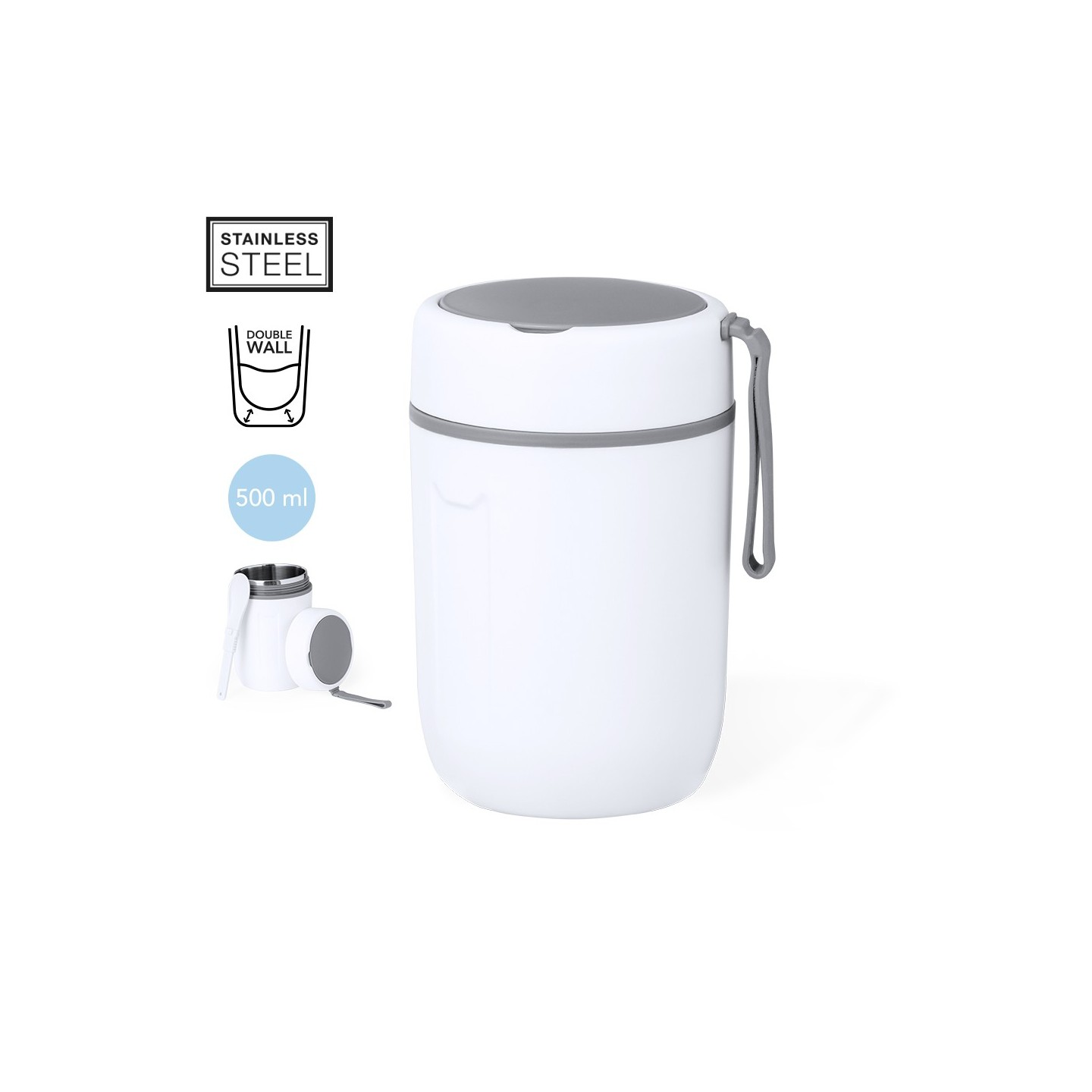 La Fiambrera Reuteman es de doble pared de acero inoxidable y PP, 500 ml. Con cierre seguro, cubierto plegable y asa. Personalizable para tu marca.