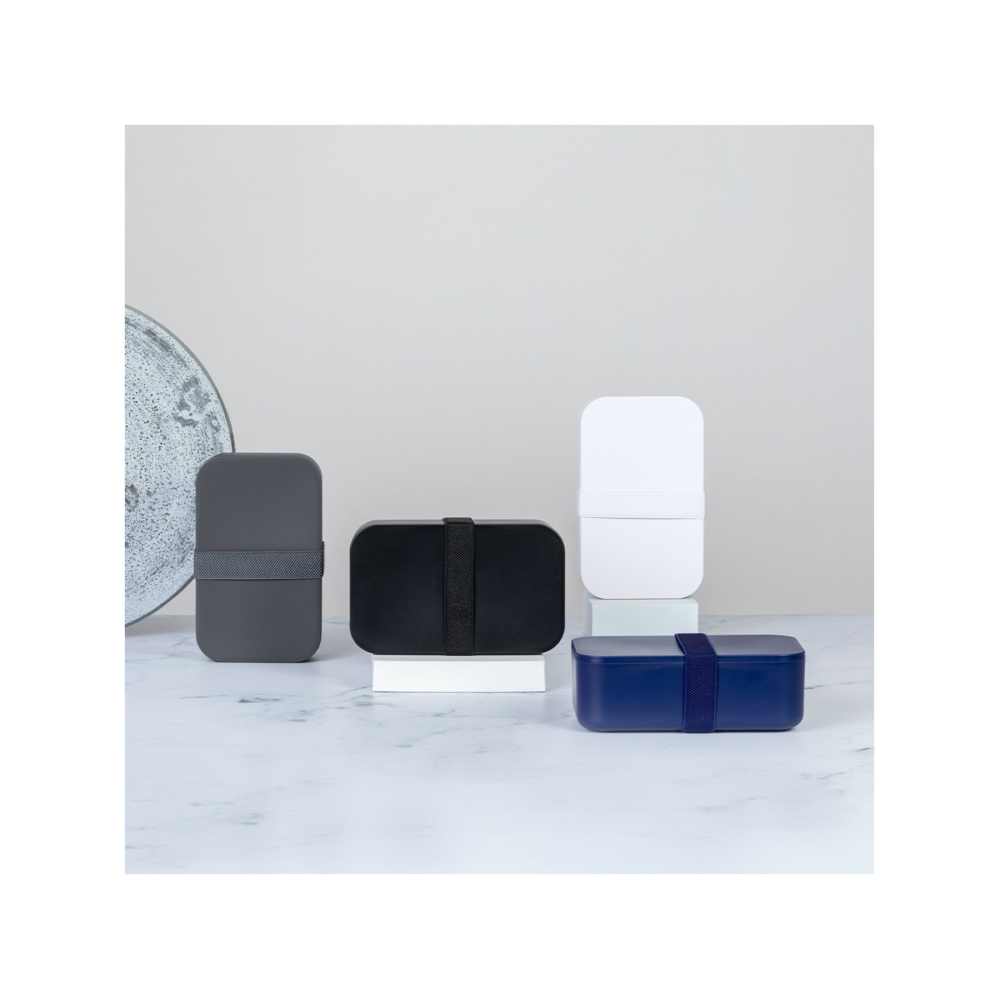 La fiambrera cuenta con una cinta elástica de seguridad a juego, que garantiza un cierre hermético y evita derrames accidentales. Así podrás llevar tu comida sin preocupaciones, incluso en movimiento.