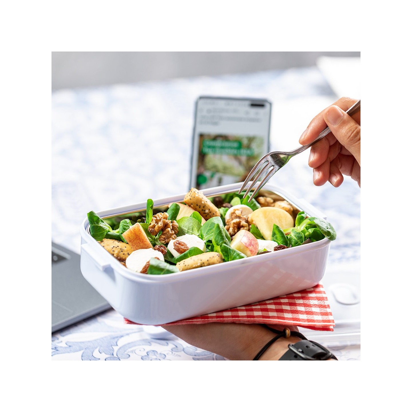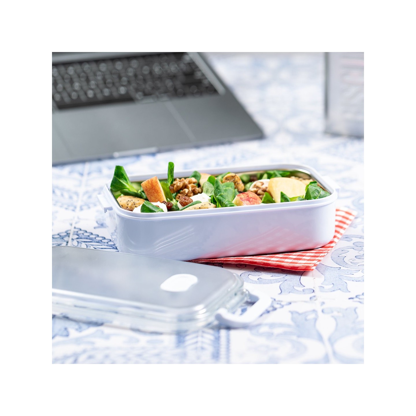 La fiambrera Veket también cuenta con un cierre de seguridad hermético, que evita cualquier fuga de calor y mantiene tus comidas calientes hasta la hora del almuerzo. Además, ofrece la posibilidad de prolongar la conservación añadiendo agua caliente en su compartimento especial.
