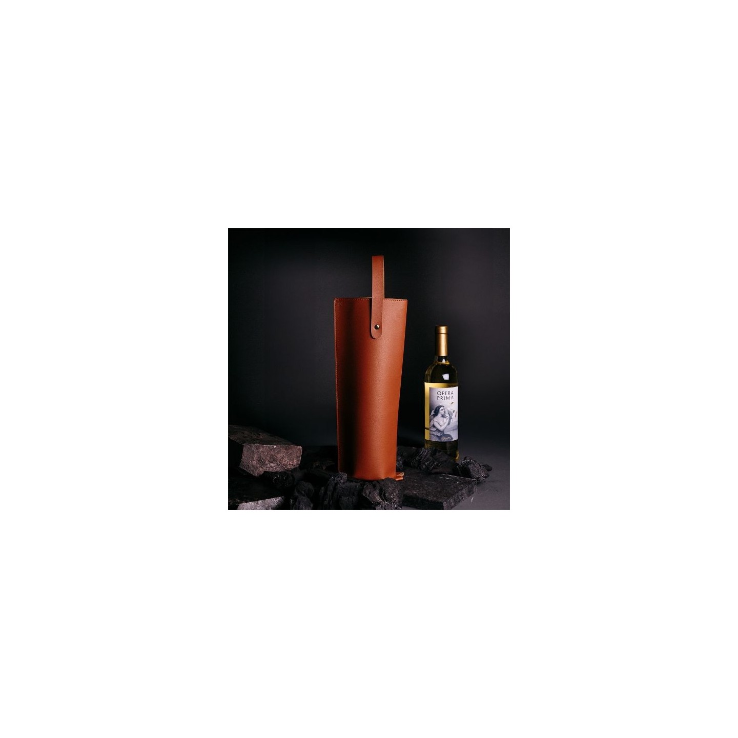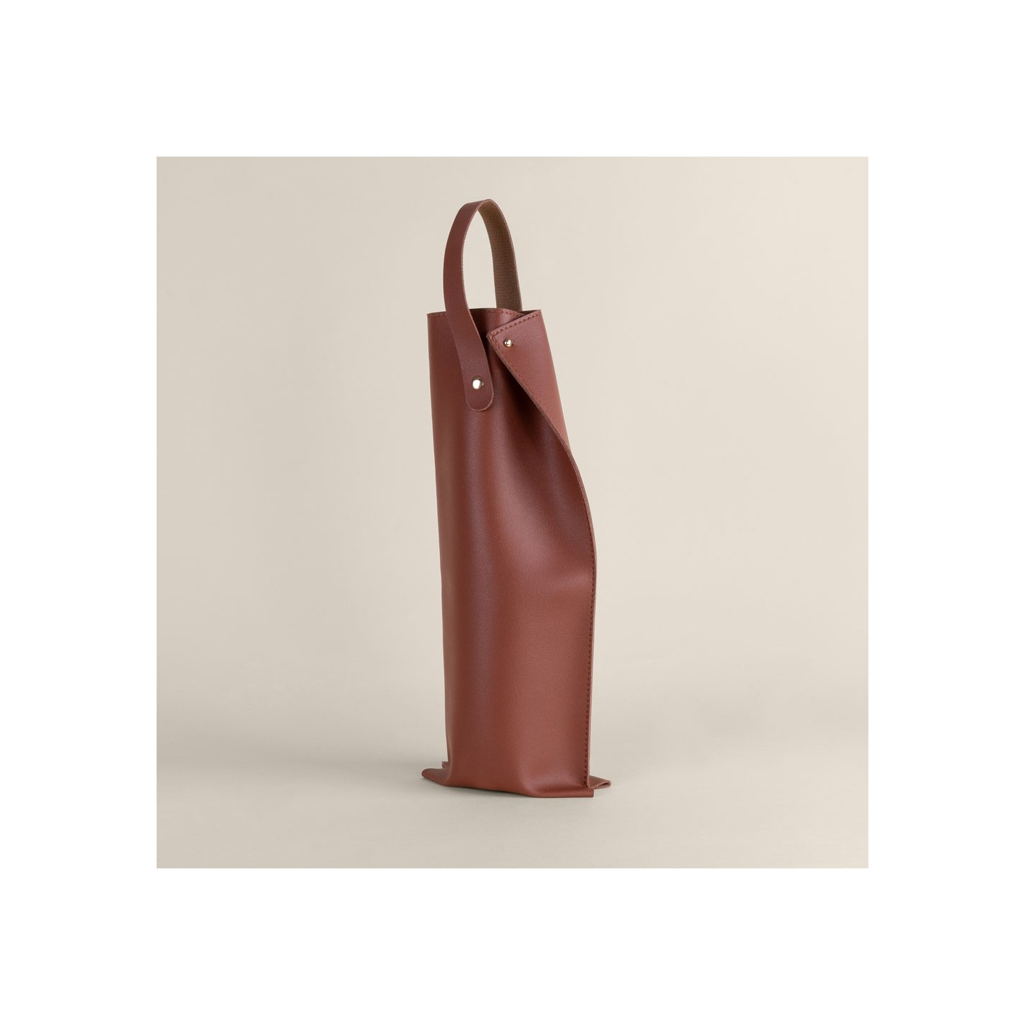 Con unas medidas de 15 x 38 cm y un diámetro de 8,5 cm, esta funda es ideal para la mayoría de botellas estándar, asegurando un ajuste cómodo y seguro. Su diseño incorpora un práctico fuelle que permite una mejor adaptación y un cierre más estético, mientras que su asa reforzada con remaches dorados garantiza un transporte cómodo y resistente, aportando un toque de distinción.