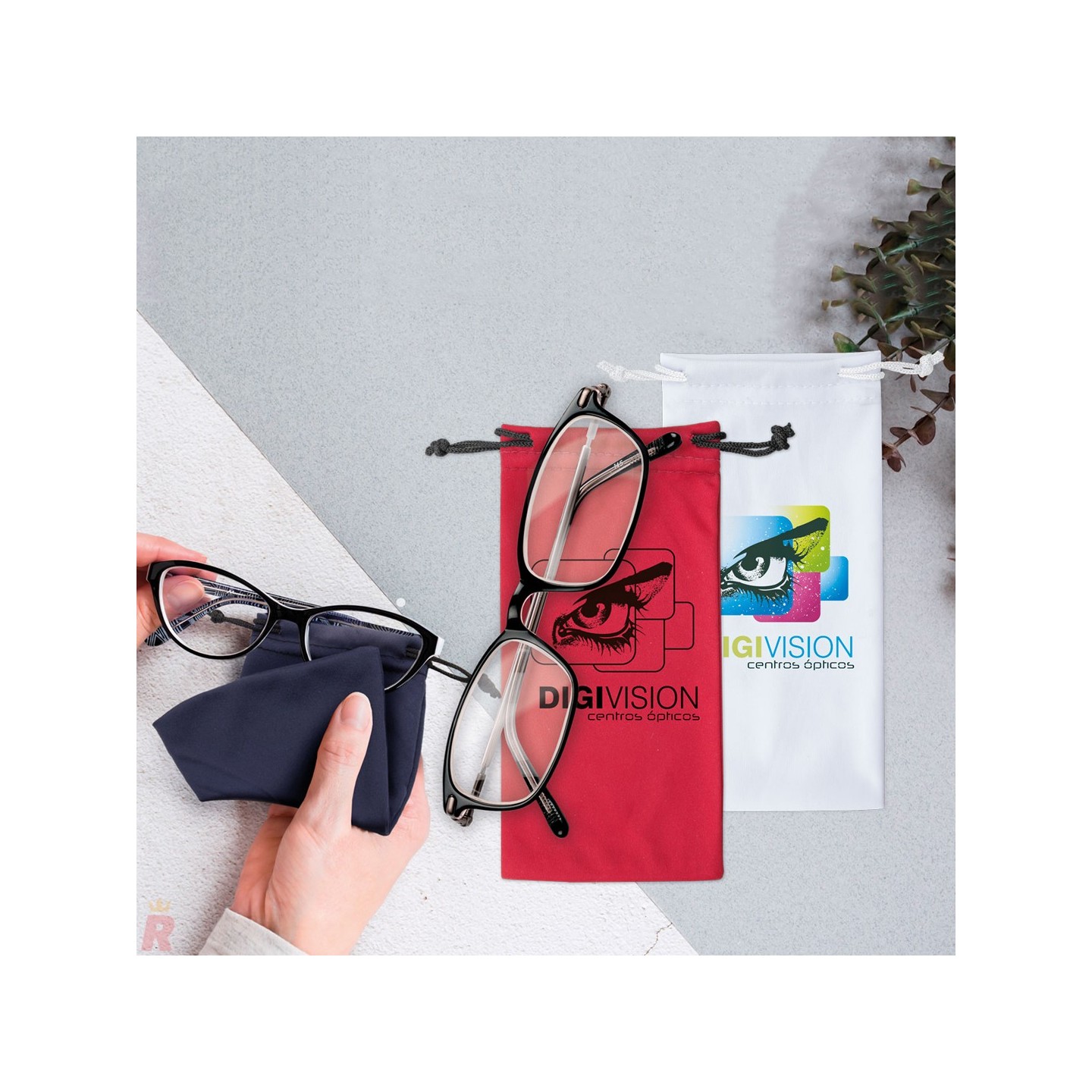 Funda microfibra doble uso para gafas: guarda y limpia tus lentes sin dañarlas. Disponible en varios colores y perfecta para personalizar con logotipo mediante sublimación