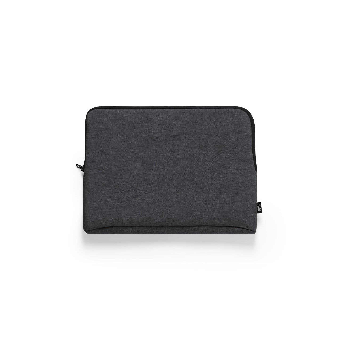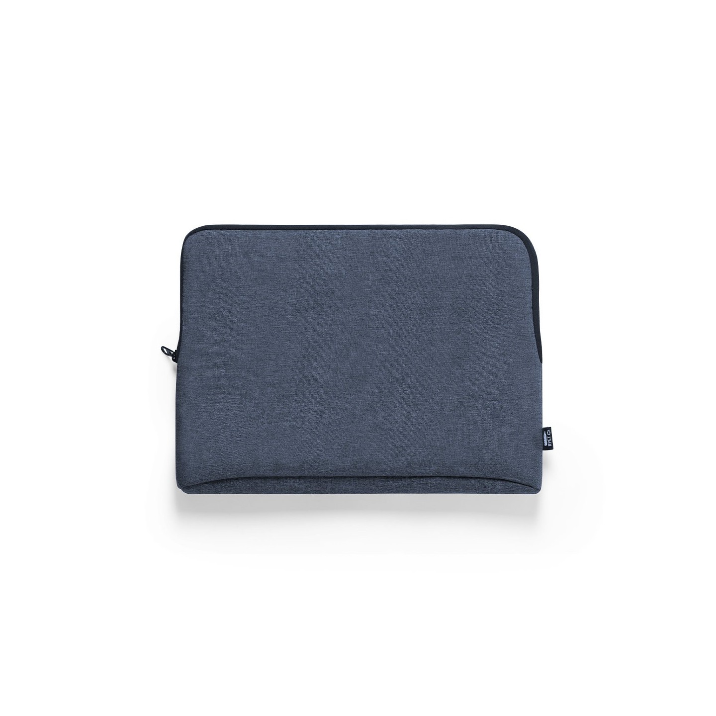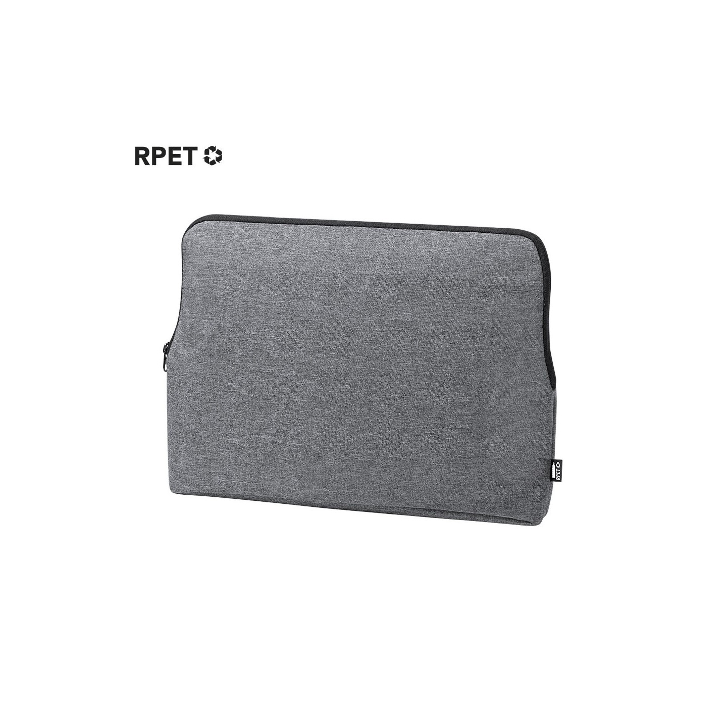 Funda de ordenador portátil Hops, elaborada en resistente 600D RPET efecto melange. Interior totalmente acolchado y forrado. Detalles en negro y cierre de cremallera.