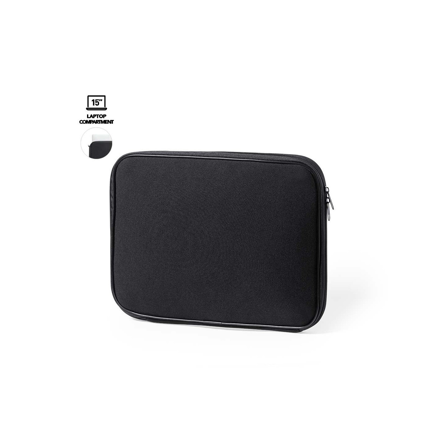 Funda para ordenador portátil Jobik, en resistente soft shell negro con interior acolchado. Cierre de cremallera a juego. Para dispositivos de hasta 15 pulgadas.
