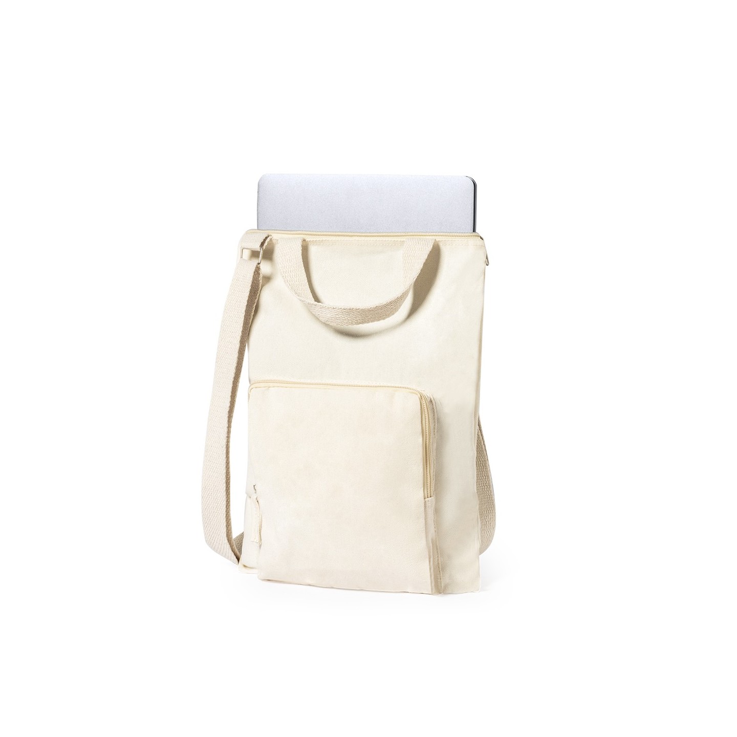 Funda de canvas natural para portátil de hasta 15 pulgadas con cierre de cremallera y cinta bandolera ajustable. Respetuosa con el medio ambiente y muy duradera.
