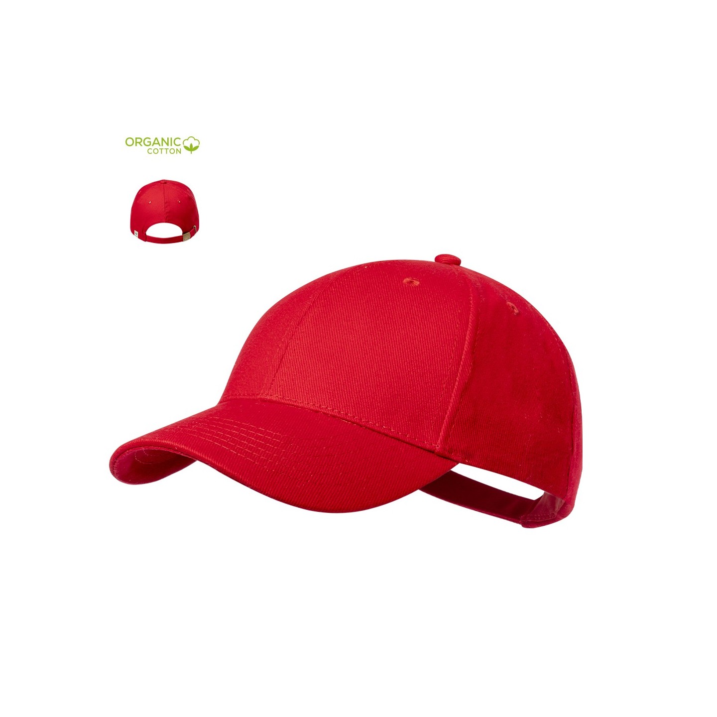 La Gorra Calipso es de algodón orgánico, cierre ajustable, orificios de ventilación. Personalizable con tu logo. Ideal para promocionar tu marca con estilo.