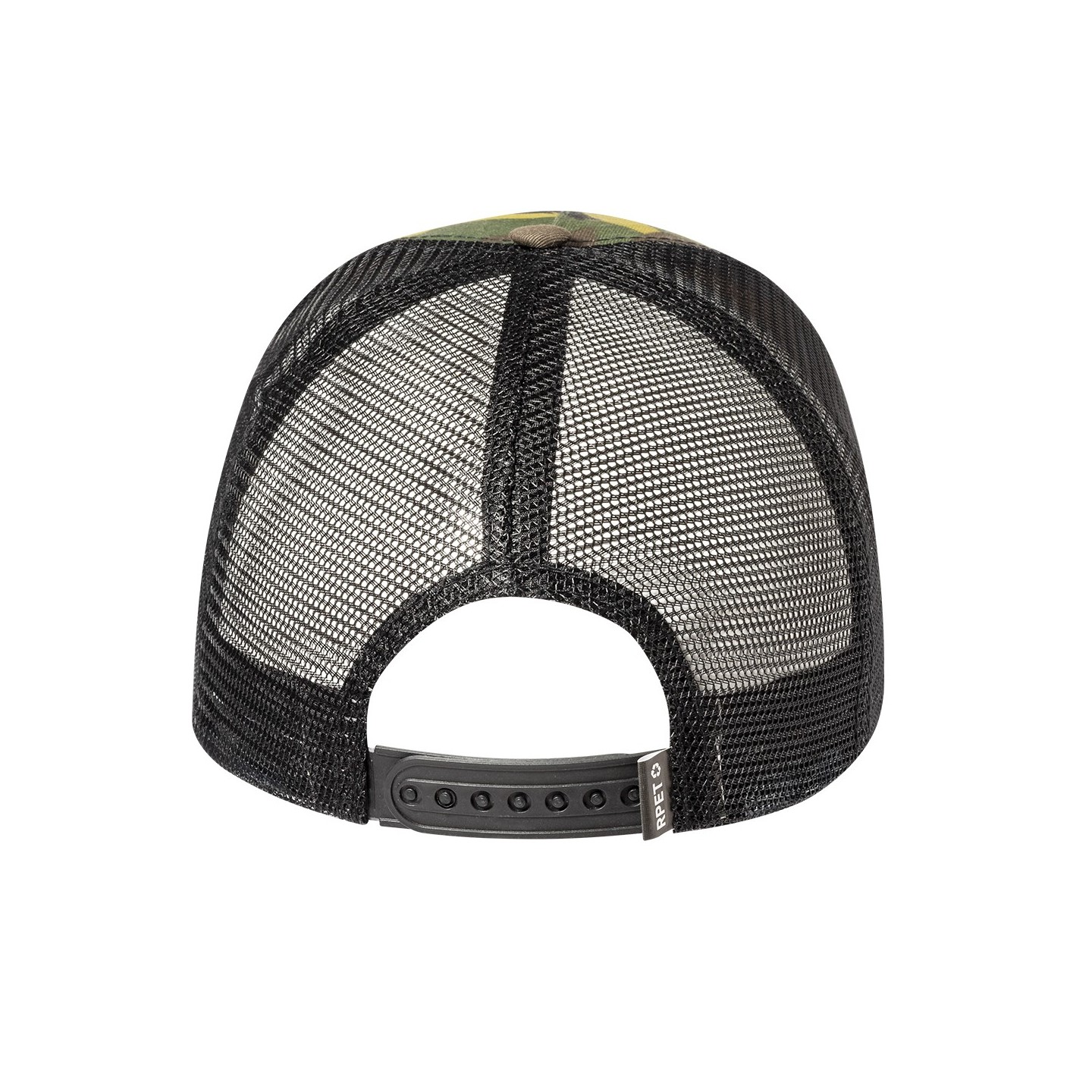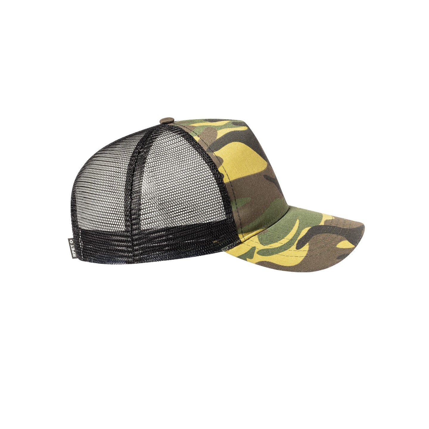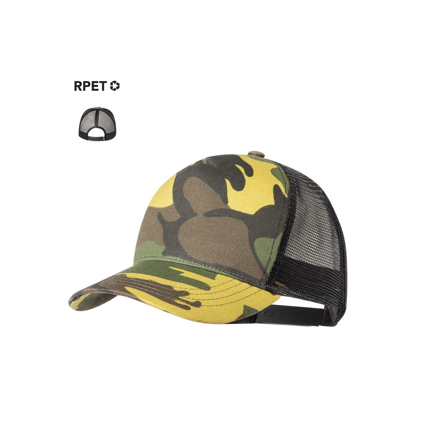 La Gorra Pamper es moderna y sostenible en poliéster RPET. Con diseño de camuflaje o verde militar. Personalizable para tu marca