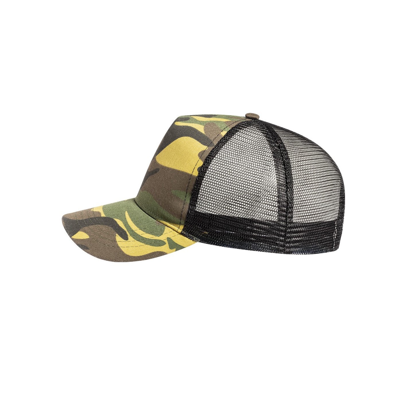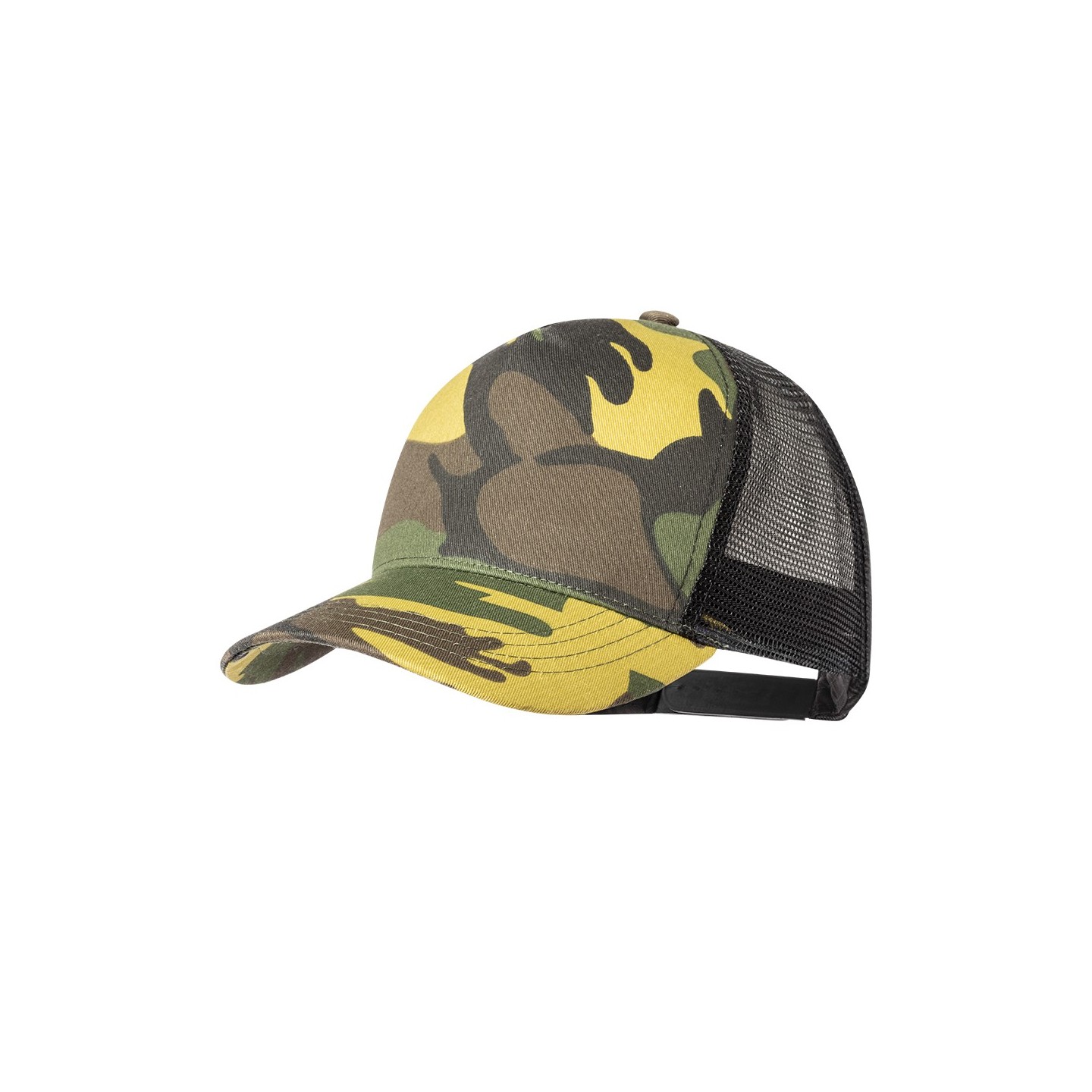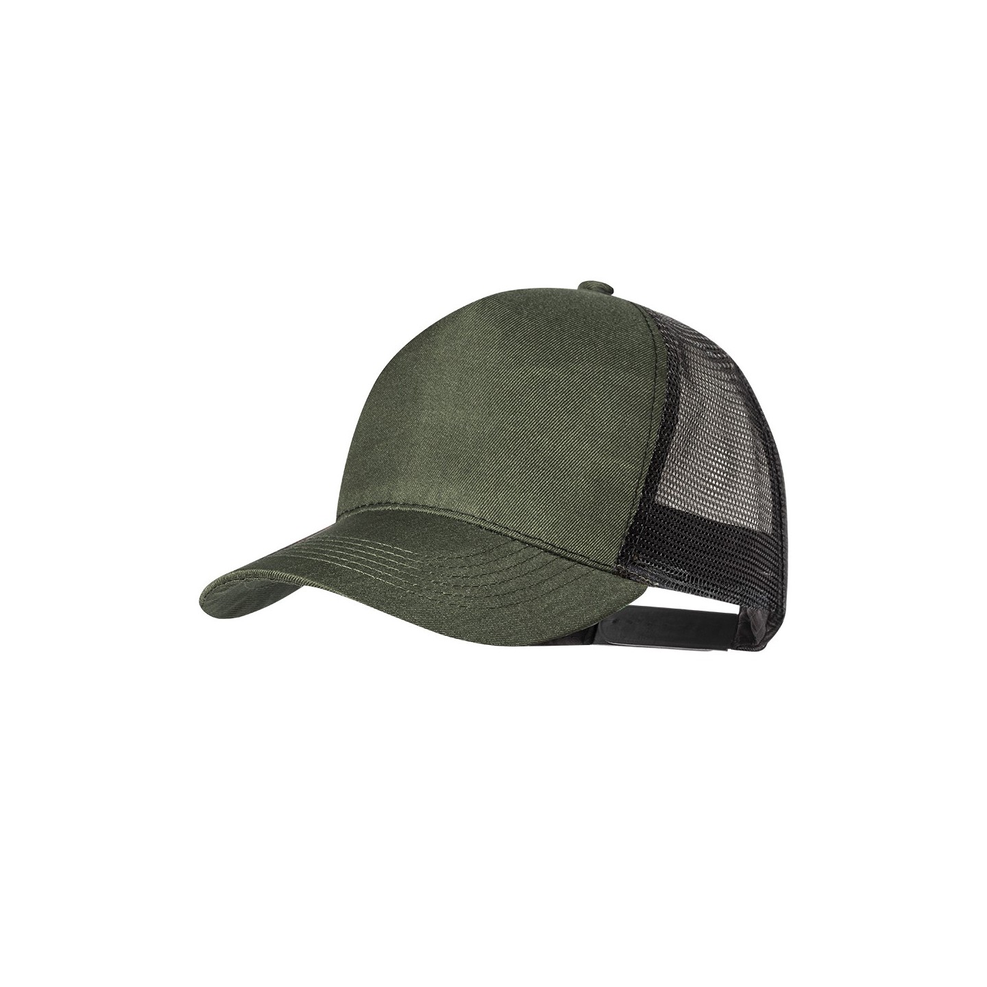La Gorra Pamper es moderna y sostenible en poliéster RPET. Con diseño de camuflaje o verde militar. Personalizable para tu marca