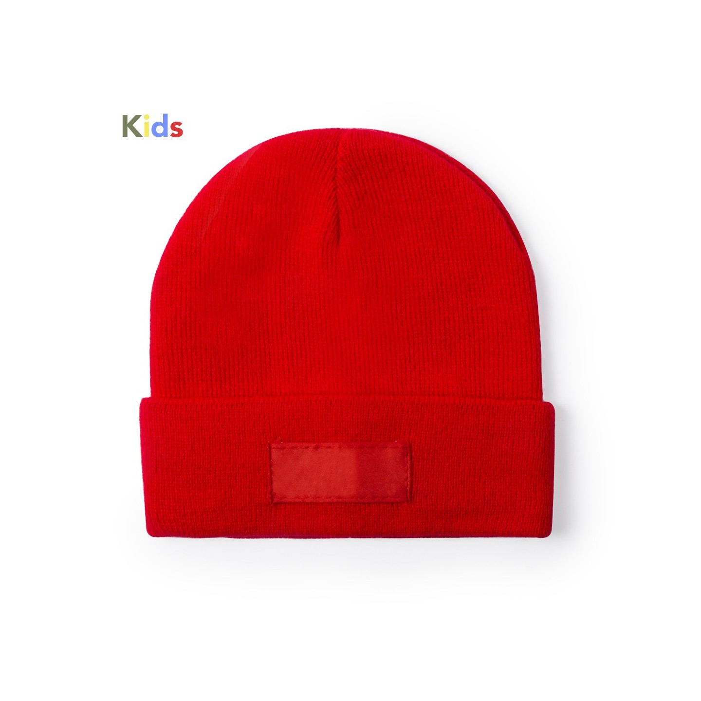 Suave y cálido gorro para niños en acrílico, elástico y de fácil ajuste. Con dobladillo y etiqueta frontal para marcaje. Personalizable con logotipo.