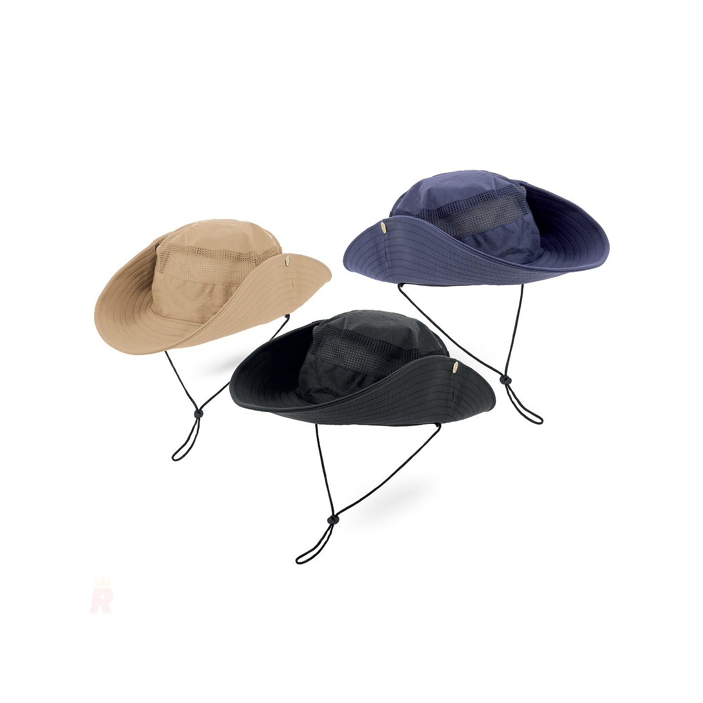 Gorro Sombrero Ala Ancha Explorador KENIA en poliéster ligero y resistente. Con cordón ajustable, ventilación y alas plegables con botones. Ideal para senderismo, pesca y safaris